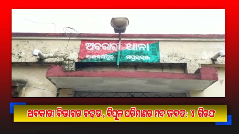 ରାଇରଙ୍ଗପୁର: ଅତର୍କିତ ଅବକାରୀ ଚଢ଼ାଉକୁ ନେଇ ଚୋରା ମଦ ବେପାରୀଙ୍କ ମଧ୍ୟରେ ଭାଳେଣି ପଡ଼ିଥିବା ଜଣାପଡ଼ିଛି । ବୁଧବାର ରାଇରଙ୍ଗପୁରର ଅବକାରୀ ଇନ୍ସପେକ୍ଟର ବାସନ୍ତୀ ସିର୍କା ସଦଳବଳେ ତିରିଙ୍ଗ ଥାନା ଓ ବହଳଦା ଥାନାର ବିଭିନ୍ନ ସ୍ଥାନରେ ଅଚାନକ ଚଢ଼ାଉ କରି ବିପୁଳ ପରିମାଣର ଦେଶୀ, ବିଦେଶୀ ମଦ ଜବତ କରିଛନ୍ତି । ଏଥିସହିତ ଚୋରା କାରବାର ଲିପ୍ତଥିବା ଚାରି ଜଣଙ୍କୁ ଗିରଫ କରାଯାଇଥିବା ସୂଚନା ମିଳିଛି ।