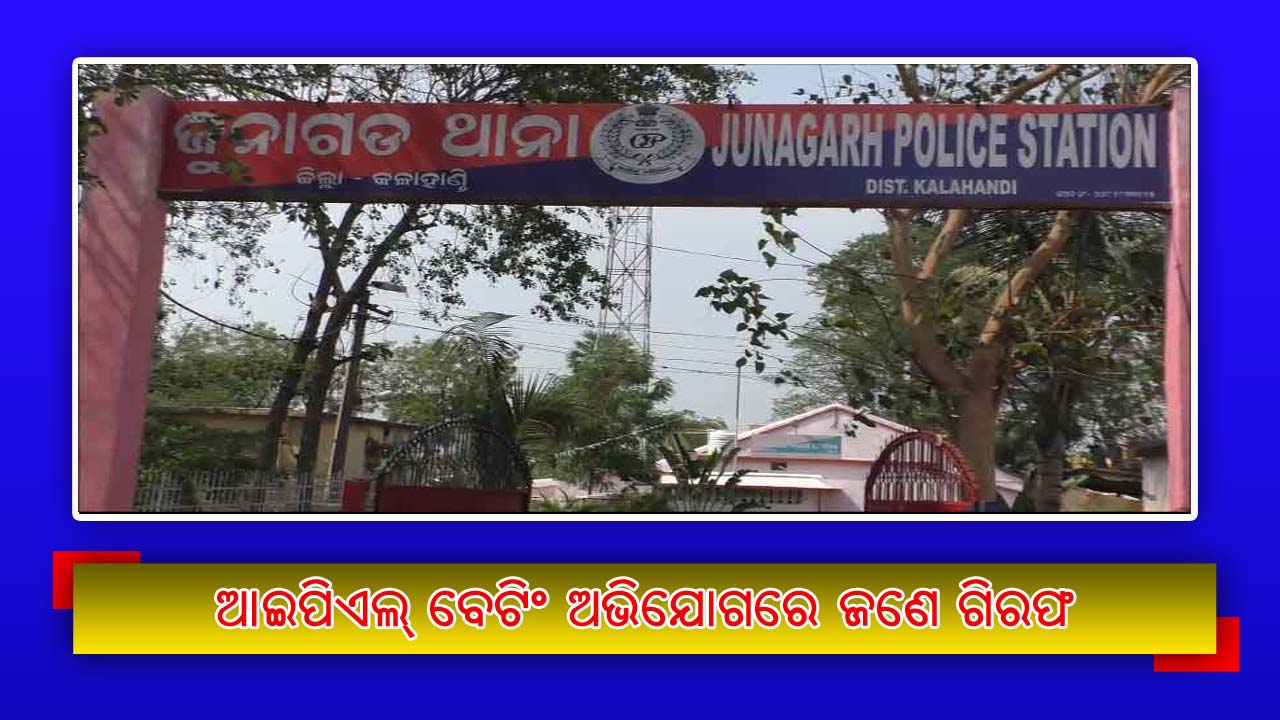 କଳାହାଣ୍ଡି : ଏବେ ଆଇପିଏଲ୍ ୧୩ତମ ସିଜିନ୍ ଜାରି ରହିଛି । ତେବେ ଆଇପିଏଲ୍ରେ ବେଟିଂ ଅଭିଯୋଗରେ ଜଣେ ବ୍ୟକ୍ତିଙ୍କୁ ଗିରଫ କରିଛି ଜୁନାଗଡ଼ ପୋଲିସ । ଆଇପିଏଲ୍ରେ ବେଟିଂ ଅଭିଯୋଗରେ ଜୁନାଗଡ଼ ଥାନା ପୋଲିସ ଅଜୟ ମେହେର ନାମକ ଜଣେ ବ୍ୟକ୍ତିଙ୍କୁ ଗିରଫ କରିଛି । ଗିରଫ ପରେ ଅଭିଯୁକ୍ତ ନିକଟରୁ ୩୪୫୦ଟଙ୍କା ସହ ମୋବାଇଲ୍ ଫୋନ୍ ଜବତ କରିଛି ।
