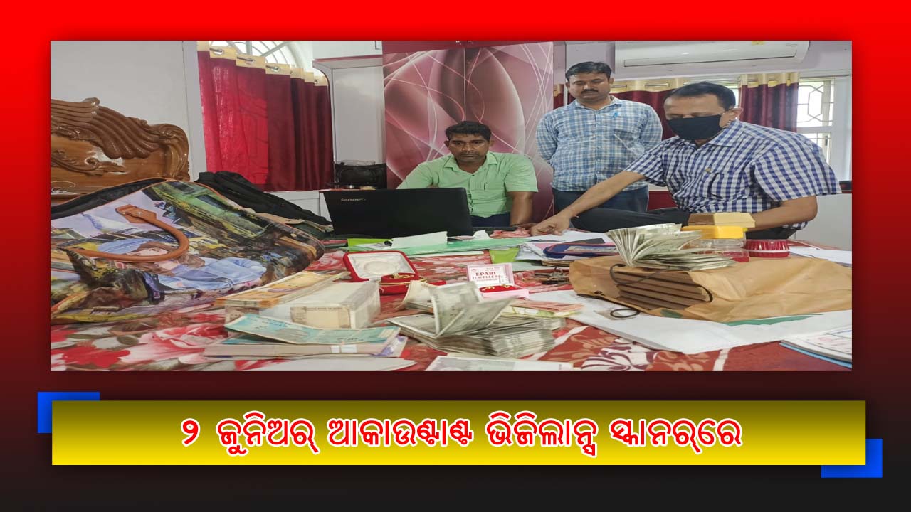 ସେହିପରି ବ୍ରହ୍ମପୁର ଡିଏଫ୍ଓ କାର୍ଯ୍ୟାଳୟ କନିÂ ଆକାଉଣ୍ଟାଣ୍ଟ ସୂର୍ଯ୍ୟନାରାୟଣ ତ୍ରିପାଠୀଙ୍କ ଘରୁ ୫୯, ୭୦, ୯୯୩ ଟଙ୍କା ସ୍ଥାବର ଓ ଅସ୍ଥାବର ସମ୍ପତ୍ତି ଠାବ ହୋଇଛି । ବ୍ରହ୍ମପୁର କମାପଲ୍ଲୀ ନୃସିଂହ ମନ୍ଦିର ସାହିରେ ଥିବା ତିନିମହଲା କୋଠା, ଆଙ୍କୁଲି ମୌଜା ଜାତୀୟ ରାଜପଥ କଡ଼ରେ ଥିବା ଆଶିଆନା ଆପାର୍ଟମେଣ୍ଟରେ ଥିବା ଫ୍ଲାଟ୍ ଓ ବ୍ରହ୍ମପୁର ଡିଏଫ୍ଓ କାର୍ଯ୍ୟାଳୟରେ ଥିବା ଅଫିସରେ ଚଢ଼ାଉ କରାଯାଇଥିଲା । କମାପଲ୍ଲୀ ନୃସିଂହ ମନ୍ଦିର ସାହିରେ ଥିବା ୩ମହଲା ଘରର ମୂଲ୍ୟ ୩୬, ୫୨, ୩୧୨ ଟଙ୍କା, ଆଶିଆନା ଆପାର୍ଟମେଣ୍ଟରେ ଥିବା ଫ୍ଲାଟ୍ର ମୂଲ୍ୟ ୧୨, ୩୮, ୫୨୦ ଟଙ୍କା, ଆଙ୍କୁଲି ମୌଜାରେ ଗୋଟିଏ ଜମି ଯାହାର ମୂଲ୍ୟ ୧, ୪୭, ୬୮୩, ପଥରା ମୌଜାରେ ଗୋଟିଏ ପ୍ଲଟ୍ ଯାହାର ମୂଲ୍ୟ ୨, ୮୩, ୩୫୦ ଟଙ୍କା ହେବ । ସେହିପରି ଅସ୍ଥାବର ସମ୍ପତ୍ତି ମଧ୍ୟରେ ୨, ୮୭, ୮୫୦ ଟଙ୍କାର ଘରକରଣା, ୩, ୨୧, ୫୬୮ ଟଙ୍କାର ବିଭିନ୍ନ ବ୍ୟାଙ୍କ୍ରେ ଜମା ଓ ନଗଦ ୩୯, ୬୫୦ ଟଙ୍କା ଠାବ କରାଯାଇଛି । ତ୍ରିପାଠୀ ୧୯୯୩ରେ କନିÂ କିରାଣି ଭାବେ ନିଯୁକ୍ତି ପାଇଥିଲେ । ବର୍ତ୍ତମାନ ସେ ବ୍ରହ୍ମପୁର ଡିଏଫ୍ଓ ଅଫିସରେ କନିÂ ଆକାଉଣ୍ଟାଣ୍ଟ ଭାବେ କାମ କରୁୁଛନ୍ତି ।