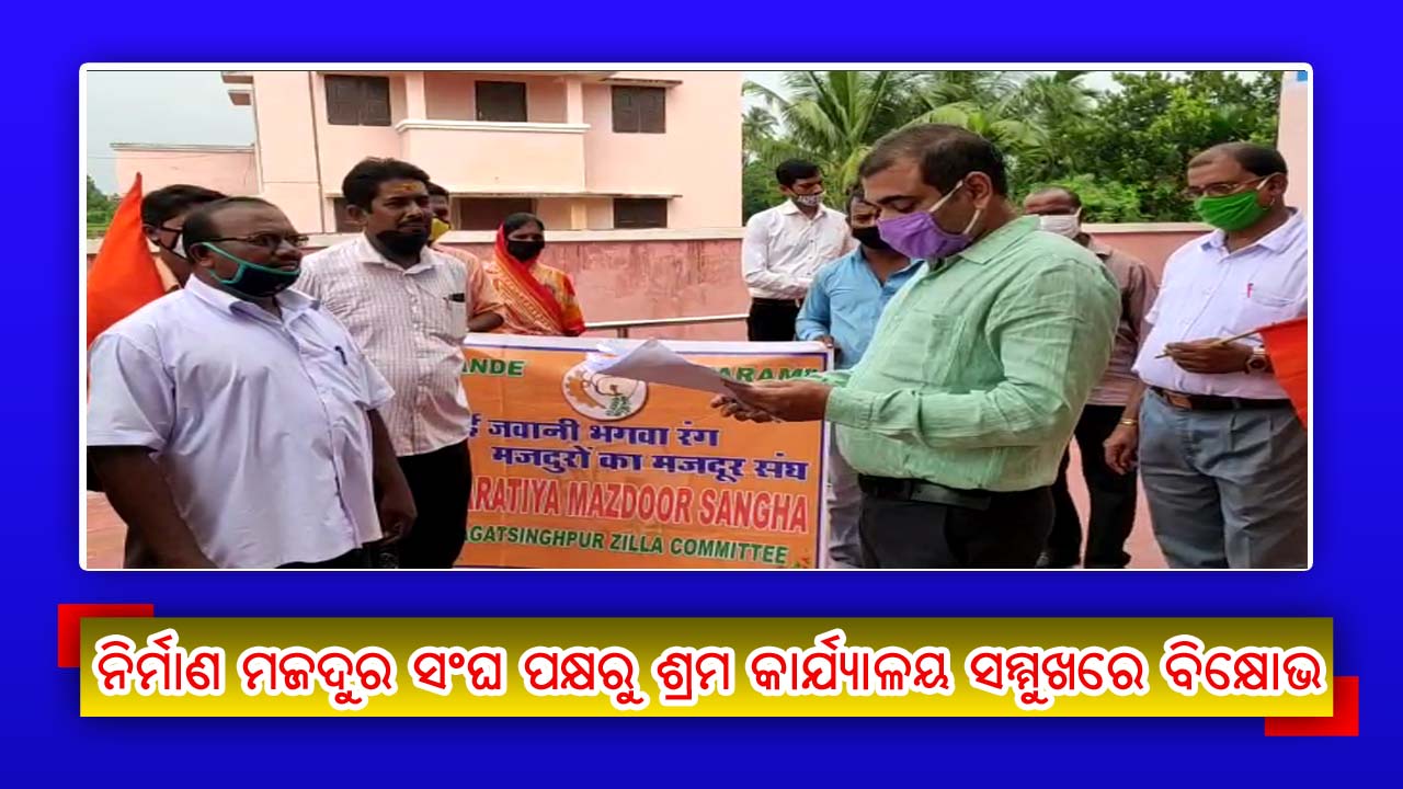 ଓଡିଶା କୋଠାବାଡି ଓ ଅନ୍ୟାନ୍ୟ ନିର୍ମାଣ ମଜଦୁର ସଂଘ ପକ୍ଷରୁ ୭ଦପାଂ ଦାବି କରି ଜିଲ୍ଲା ଶ୍ରମ କାର୍ୟ୍ୟାଳୟ ସମ୍ମୁଖରେ ବିକ୍ଷୋଭ ଓ ମୁଖ୍ୟ ମନ୍ତ୍ରୀଙ୍କୁ ଦାବିପତ୍ର