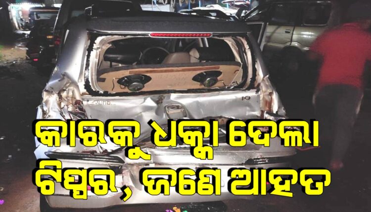 ଜୟପୁର: କୋରାପୁଟ ଅଭିମୁଖେ ଯାଉଥିବା ଏକ କାର୍କୁ ଧକ୍କା ଦେଇଛି ଟିପ୍ପର୍ । ଦୁର୍ଘଟଣାରେ କାର୍ରେ ବସିଥିବା ଜଣେ ବ୍ୟକ୍ତି ଆହତ ହୋଇଛନ୍ତି । ତାଙ୍କର ପରିଚୟ ମିଳିପାରିନାହିଁ । ଆହତଙ୍କୁ ସ୍ଥାନୀୟ ଡିଏଚ୍ଏଚ୍ରେ ଭର୍ତ୍ତି କରାଯାଇଛି । ଟାଉନ୍ ପୁଲିସ୍ ଉଭୟ ଗାଡିକୁ ଜବତ କରି ତଦନ୍ତ ଆରମ୍ଭ କରିଛି ।