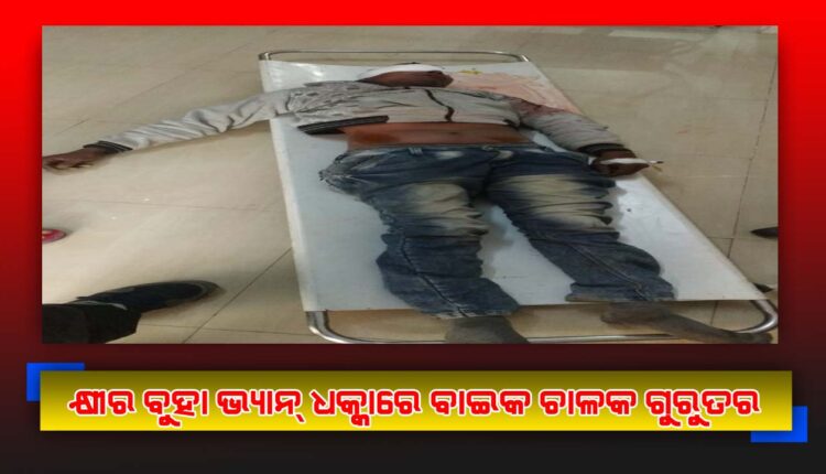ବୌଦ୍ଧ,(ବି.ବି.ନୁ୍ୟଜ): ବୌଦ୍ଧ ଜିଲ୍ଲା ୫୭ ନମ୍ବର ଜାତୀୟ ରାଜପଥ ବାଉଁଶୁଣି ମାଉଲୀ ମୁଣ୍ଡା ଛକ ନିକଟରେ ଏକ ସଡ଼କ ଦୁର୍ଘଟଣାରେ ବାଇକରେ ଯାଉଥିବା ତାଲସରଡା ପଞ୍ଚାୟତ କଙ୍କଲା ଗାଁରର ବଜରଙ୍ଗୀ ସେଠୀ (୩୫) ଗୁରୁତର ହୋଇଛନ୍ତି । ବଜରଙ୍ଗୀ କୌଣସି କାମରେ ବାଇକ (ଓଡ଼ି ୨୭ ଏ ୩୪୨୬) ଯାଗେ ବାଉଁଶୁଣି ଆଡକୁ ଆସୁଥିବା ବେଳେ ବିପରିତ ଦିଗରୁ ଆସୁଥିବା ଏକ ଦୁଗ୍ଧ ବାଝେଇ ୪୦୭ ଗାଡି (ଓଡି ୦୩ ୯୬୦୯) ସହ ମୁହାମୁହିଁ ହୋଇଥିଲେ । ଖବର ପାଇ ବାଉଁଶୁଣି ଦମକଳ ବାହିନୀ ଗୁରୁତରଙ୍କୁ ଡାକ୍ତରଖାନାରେ ଭର୍ତ୍ତି କରିଥିଲା । ବଜରଙ୍ଗୀ ସେଠୀଙ୍କ ଅବସ୍ଥା ଗୁରୁତର ଥିବାରୁ ତାଙ୍କୁ ବୁର୍ଲାକୁ ସ୍ଥାନାନ୍ତର ପାଇଁ ଡାକ୍ତର ପରାମର୍ଶ ଦେଇଥିବା ଜଣାପଡିଛି । ବାଉଁଶୁଣୀ ଥାନା ପୁଲିସ ଘଟଣାସ୍ଥଳରେ ପହଂଚି ତଦନ୍ତ କରୁଥିବା ଜଣାପଡ଼ିଛି ।