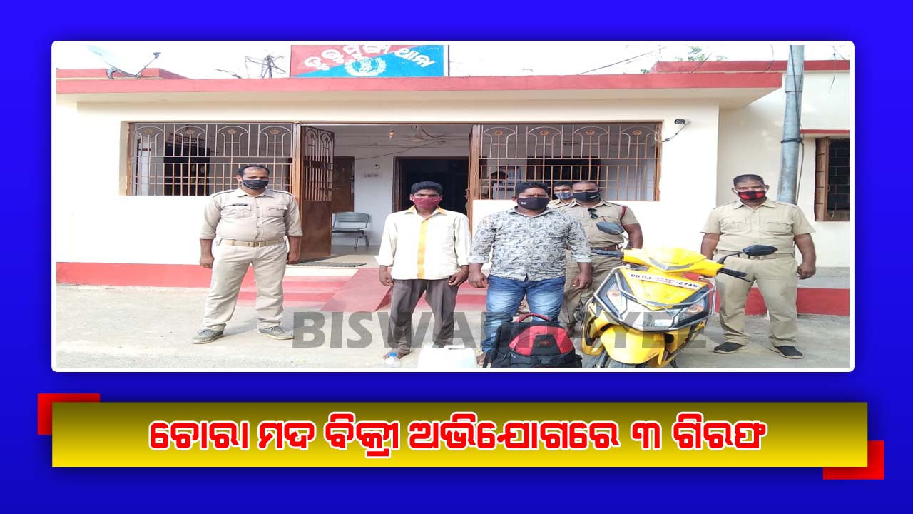 ଚୋରା ମଦ ବିକ୍ରୀ ଅଭିଯୋଗରେ ୩ ଗିରଫ