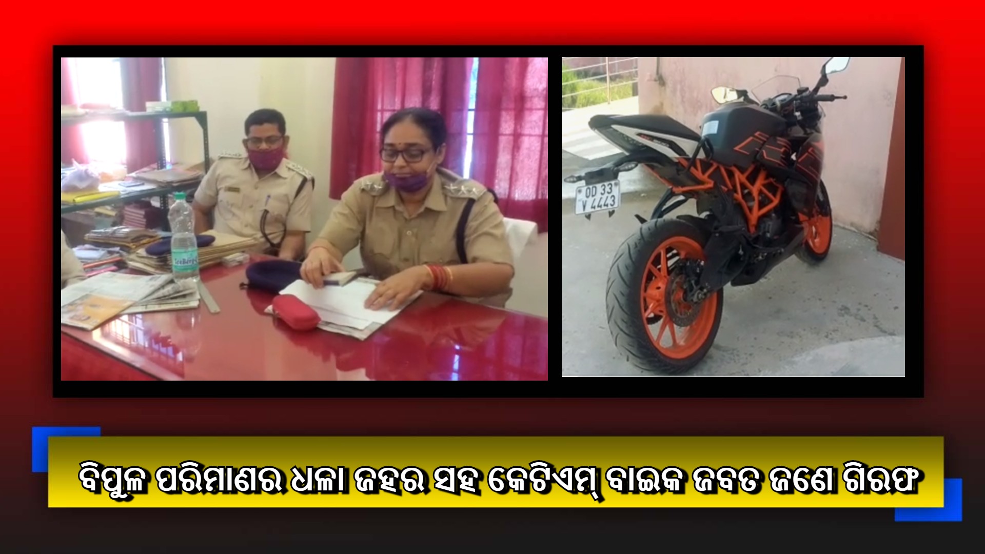ଜଗତସିଂହପୁର ଅବକାରୀ ବିଭାଗ କୁ ବଡ଼ ସଫଳତା ବିପୁଳ ପରିମାଣ ର ଧଳା ଜହର ସହ କେଟିଏମ୍ ବାଇକ ଜବତ ଜଣେ ଗିରଫ