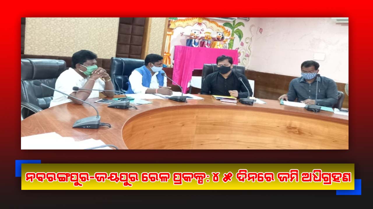 ସାଂସଦ ରମେଶ ଚନ୍ଦ୍ର ମାଝି ବୈଠକରେ ଅଧ୍ୟକ୍ଷତା କରିଥିଲେ । ସ୍ଥାନୀୟ ମିଶନ ଶକ୍ତି ସଭାଗୃହରେ ଏହାର ଆୟୋଜନ କରାଯାଇଥିଲା । ଆଲୋଚନା ବେଳେ ଜମି ଅଧିଗ୍ରହଣକୁ ଗୁରୁତ୍ୱ ଦିଆଯାଇଥିବା ବେଳେ କାମ ଆରମ୍ଭ କରିବାକୁ ଆବଶ୍ୟକ ଅମିନ, ଆର୍ଆଇଙ୍କୁ ନିଯୁକ୍ତ ଦେବାକୁ ନିଷ୍ପତ୍ତି ହୋଇଛି । ପ୍ରକଳ୍ପ ପାଇଁ ଜିଲ୍ଲାରେ ମାତ୍ର ୧୧ କିମି ଓ କୋରାପୁଟ ଜିଲ୍ଲାରେ ୩୦ କିମି ଜମି ଅଧିଗ୍ରହଣ କରାଯିବ । କେବଳ ନବରଙ୍ଗପୁର ଜିଲ୍ଲା ପାଇଁ ୧୯୪ ଏକର ଜମି ଅଧିଗ୍ରହଣ ଯୋଜନା ରହିଛି । ନନ୍ଦାହାଣ୍ଡି ଓ ନବରଙ୍ଗପୁର ବ୍ଲକର ୨ଟି ଗାଁର ୪୫ ଏକର ଓ ରେଳଷ୍ଟେସନ୍ ପାଇଁ ନନ୍ଦାହାଣ୍ଡି ବ୍ଲକର ଗାଦବାଗୁଡା ଓ ପଡାଲଗୁଡା ଗାଁରେ ୧୪୯ ଏକର ଜମି ଅଧିଗ୍ରହଣ ପାଇଁ ସର୍ଭେ କାମ ଶେଷ ହୋଇଛି । ଅର୍ଥନୈତିକ ଓ ସାମାଜିକ ସର୍ଭେ ମଧ୍ୟ ଶେଷ ହୋଇଛି । କେବଳ ଜମି ଅଧିଗ୍ରହଣ ବାକି ରହିଛି । ଏପରିସ୍ଥଳେ, ଜିଲ୍ଲା ପ୍ରଶାସନ ପକ୍ଷରୁ ଆସନ୍ତା ୪୫ ଦିନ ମଧ୍ୟରେ ଜମି ଅଧିଗ୍ରହଣ ଆରମ୍ଭ ହେବ ବୋଲି ଜିଲ୍ଲାପାଳ ଡ. ଅଜିତ କୁମାର ମିଶ୍ର କହିଛନ୍ତି । କରୋନା ପାଇଁ ପ୍ରକ୍ରିୟା ଅଟକି ରହିଥିବା ବେଳେ କୋରାପୁଟ ଜିଲ୍ଲାରେ ପ୍ରକ୍ରିୟା ଆରମ୍ଭ କରିବାକୁ ଆହୁରି ଦେଢମାସ ସମୟ ଲାଗିବ ବୋଲି ଜୟପୁର ଉପଜିଲ୍ଲାପାଳ ହେମକାନ୍ତ ସୟ ସ୍ପଷ୍ଟ କରିଛନ୍ତି । ନବରଙ୍ଗପୁର-ଜୟପୁର ଓ ଜୟପୁର-ମାଲକାନଗିରି ପ୍ରକଳ୍ପ ପାଇଁ ଖୁବଶୀଘ୍ର ଦ୍ୱିତୀୟ ବୈଠକ କରାଯିବ ବୋଲି ସାଂସଦ ଶ୍ରୀ ମାଝି କହିଛନ୍ତି । ରାଜ୍ୟ ସରକାରଙ୍କ ଜମି ଅଧିଗ୍ରହଣ ପରେ ପ୍ରକଳ୍ପ କାମ ଆରମ୍ଭ ହେବ ବୋଲି ଶ୍ରୀ ମାଝି ସୂଚନା ଦେଇଛନ୍ତି ।