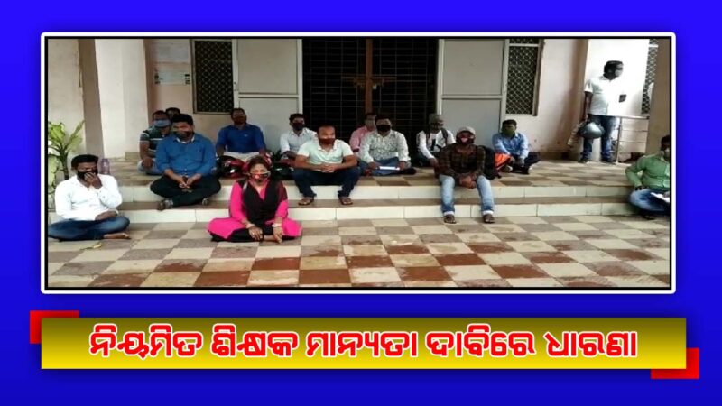 ନିୟମିତ ଶିକ୍ଷକ ମାନ୍ୟତା ଦାବିରେ ଧାରଣା