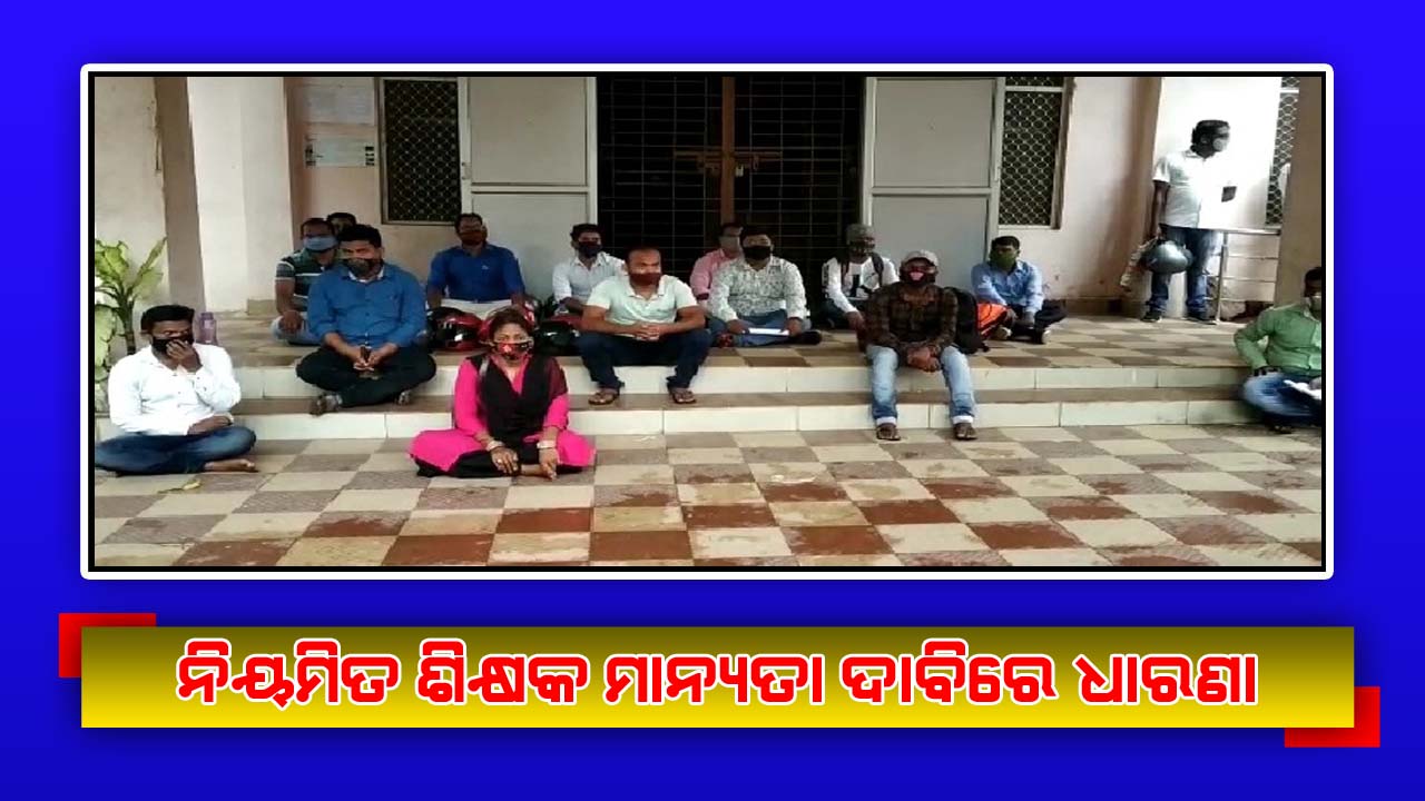 ନିୟମିତ ଶିକ୍ଷକ ମାନ୍ୟତା ଦାବିରେ ଧାରଣା