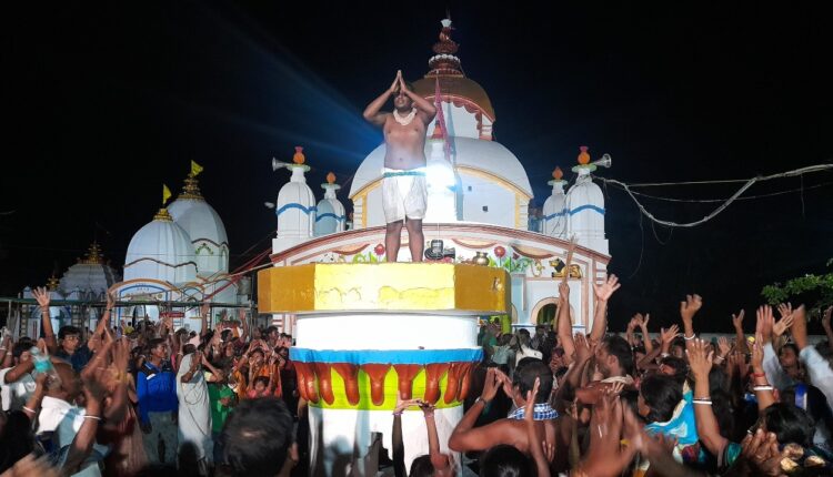 ଚନ୍ଦନେଶ୍ୱର,(ବି.ବି.ନୁ୍ୟଜ): ରାଜ୍ୟର ଅନ୍ୟତମ ପ୍ରସିଦ୍ଧ ଚନ୍ଦନେଶ୍ୱର ଚଡ଼କ ପର୍ବର ମଙ୍ଗଳବାର ଥିଲା ଦ୍ୱିତୀୟ ଅର୍ଘ୍ୟ ଏବଂ ନୀଳ ପର୍ବ । ଭକ୍ତ, ଶ୍ରଦ୍ଧାଳୁଙ୍କ ଗହଳି ଏବଂ ପଞ୍ଚାକ୍ଷର ମନ୍ତ୍ରରେ ପ୍ରକମ୍ପିତ ହୋଇ ଉଠିଥିଲା ଶୈବପୀଠ । ଏହି ଅବସରରେ ପୂର୍ବ ଭାରତର ପ୍ରସିଦ୍ଧ ଶୈବପୀଠ ବାବା ଚନ୍ଦନେଶ୍ୱର ଓ ଏସିଆର ସର୍ବ ବୃହତ ଶିବଲିଙ୍ଗ କୁମ୍ଭୀରଗଡ଼ିର ବାବା ଭୁଷଣ୍ଡେଶ୍ୱର ପୀଠ ହୋଇ ଉଠିଥିଲା ଚଳଚଞ୍ଚଳ । ନୀଳ ପର୍ବ ଅବସରରେ ଚନ୍ଦନେଶ୍ୱରରେ ପାଟଭକ୍ତ ହରିଶ୍ଚନ୍ଦ୍ର ସାହୁ, ଶ୍ରୀବେକଡ଼ି ନିରଞ୍ଜନ ଲେଙ୍କା, ଗୋପାଳ ଚନ୍ଦ୍ର ଲେଙ୍କା ଓ ଦେଉଳିଆ ଅଜିତ ପାତ୍ର, ହେମନ୍ତ ରାଉଳ ସମେତ ୧୪ଜଣ ଉପବୀତଧାରୀ ଭକ୍ତ, ସେବାୟତ ତପନ କୁମାର ପଣ୍ଡା, ବୁଦ୍ଧଦେବ ପଣ୍ଡା, ନିମାଇଁ ପଣ୍ଡା, ମାଳାକାର, ନାପିତ ଓ ବାଦ୍ୟକାର ବାଡ଼ସରିଷା ଗାଁର ହାକାଣ୍ଡ ପୋଖରୀ ନିକଟକୁ ଯାଇ ବେକଡ଼ା ନୃତ୍ୟ ପରିବେଷଣ କରିଥିଲେ । ସେଠାରେ ମନ୍ଦିରକୁ ଫେରି ଶିବ, ଦୁର୍ଗାଙ୍କ ପ୍ରତିଭୂ କୁହାଯାଉଥିବା ଥମ୍ବି କାଠ ଦ୍ୱୟକୁ ନୀଳ ପୋଖରୀରୁ ଉଦ୍ଧାର ପୂର୍ବକ ପୂଜାର୍ଚ୍ଚନା କରାଯାଇଥିଲା । ପରେ ନେତ୍ରକୁଣ୍ଡ ଠାରେ ଶେଷ ବେକଡ଼ି ପ୍ରଦର୍ଶନ ହୋଇ ଅର୍ଘ୍ୟଦାନ ଶେଷ ହୋଇଥିଲା । ବୁଧବାର ଅନୁÂିତ ହେବ ମହାପାଟ ପର୍ବ । ଅପରପକ୍ଷରେ ନୀଳ ପର୍ବ ଅବସରରେ ବହୁ କାଉଡ଼ିଆ ବିଭିନ୍ନ ଜଳାଶୟରୁ ପାଣି ଭାର ନେଇ କେତେକ ଶୈବପୀଠରେ ଜଳାଭିଷେକ କରୁଥିବା ନଜରକୁ ଆସୁଥିଲା ।