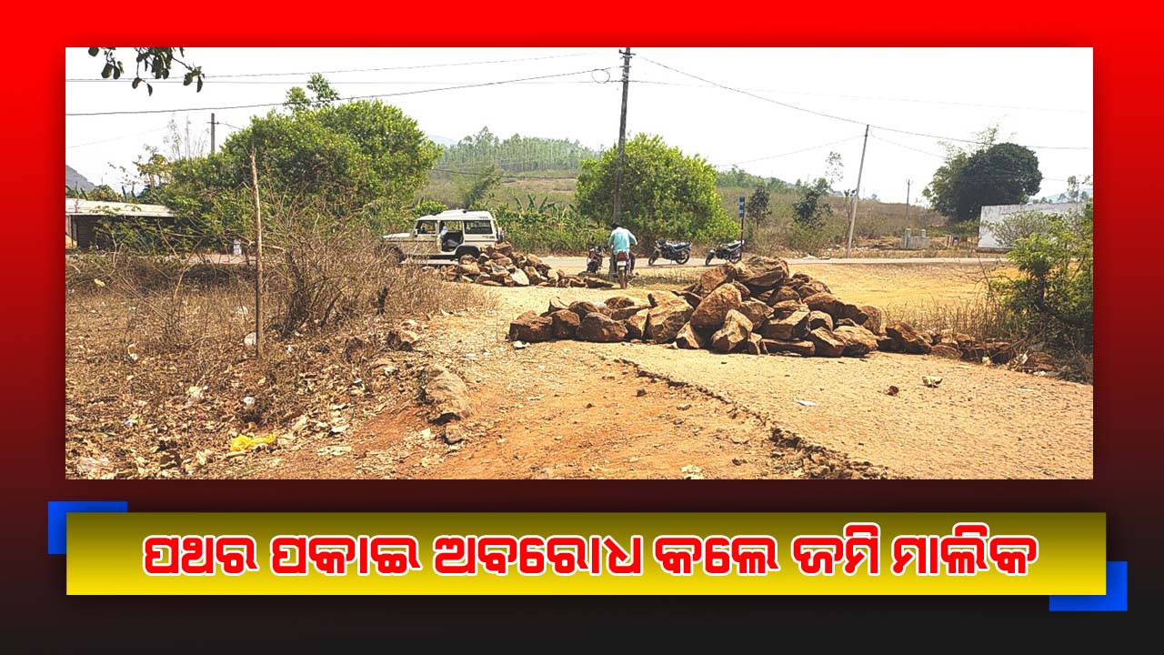 ଦଶମନ୍ତପୁର,(ବି.ବି.ନୁ୍ୟଜ): ବ୍ୟକ୍ତିଗତ ଜମିରେ ରାସ୍ତା ନିର୍ମାଣ କରିବା ଏବେ ପ୍ରଶାସନକୁ ଅଡୁଆରେ ପକାଇଛି । ରାସ୍ତା ନିର୍ମାଣକୁ ବିରୋଧ କରି ପଥର ପକାଇ ରାସ୍ତା ଅବରୋଧ କରିଛନ୍ତି ଜମି ମାଲିକ ଓ ଦୁଇଖଣ୍ଡ ଗ୍ରାମବାସୀ । ଆଜି ପ୍ରଶାସନ ଗାଁରେ ପହଞ୍ଚି ଜମିମାଲିକଙ୍କୁ ବୁଝାସୁଝା କରିବା ପରେ ରାସ୍ତାରୁ ପଥର ହଟାଇଛନ୍ତି ଜମି ମାଲିକ ।