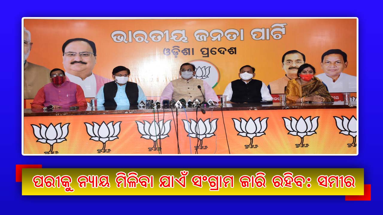 ବିଜେପି ରାଜ୍ୟ କାର୍ଯ୍ୟାଳୟରେ ଅନୁÂିତ ସାମ୍ବାଦିକ ସମ୍ମିଳନୀରେ ସମୀର କହିଛନ୍ତି, ପରୀ ଜଣେ ଗରିବ ଅଟୋ ଡ୍ରାଇଭରର ଝିଅ । ପରୀକୁ ଅପହରଣ ପରେ ହତ୍ୟା କରାଗଲା ବୋଲି ପରିବାର ଲୋକେ ଅଭିଯୋଗ କରିଛନ୍ତି । ଏପରିକି ଝିଅର ଆଖି, କିଡ୍ନି ଚୋରି ହୋଇଥିବା ନେଇ ପରୀର ବାପା-ମା’ ଅଭିଯୋଗ ଆଣିଛନ୍ତି । ହେଲେ ୪ ମାସ ଧରି ପୁଲିସ କ’ଣ କରୁଥିଲା? କାହା ଚାପରେ ଅଭିଯୁକ୍ତଙ୍କୁ ସୁରକ୍ଷା ଦିଆଯାଇଥିଲା? ଓଲଟି ପୁଲିସ ଅଭିଯୋଗକାରୀଙ୍କ ପଲିଗ୍ରାଫ ପରୀକ୍ଷା କରୁଛି । ସ୍ଥାନୀୟ ସରପଞ୍ଚଙ୍କ ସହ ମନ୍ତ୍ରୀଙ୍କ କଥାବାର୍ତ୍ତାର ଅଡିଓ ଭାଇରାଲ୍ ହୋଇଛି । ଏ ଦିଗରେ ବି ପୁଲିସ ତଦନ୍ତ କରୁନାହିଁ । ବିଧାନସଭାରେ ବିଜେପି ଏସବୁ ପ୍ରସଙ୍ଗ ଉଠାଇଥିବାବେଳେ ବିଜେଡି ଓ କଂଗ୍ରେସ ପରୀକୁ ନ୍ୟାୟ ଦେବା ପରିବର୍ତ୍ତେ ଅଭିଯୁକ୍ତଙ୍କୁ ଘଣ୍ଟ ଘୋଡ଼ାଇଲେ ବୋଲି ସେ ଅଭିଯୋଗ କରିଛନ୍ତି ।