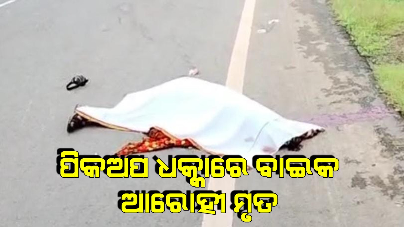 ପିକଅପ ଧକ୍କା ଦ୍ୱାରା ବାଇକ ଆରୋହୀ ଙ୍କ ଘଟଣା ସ୍ଥଳ ରେ ମୃତ୍ୟୁ