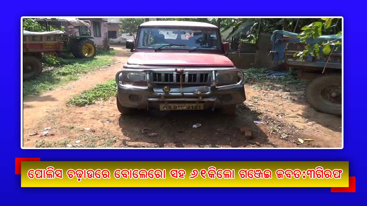 ପୋଲିସ ଚଢ଼ାଉରେ ବୋଲେରୋ ସହ ୬୧କିଲୋ ଗଞ୍ଜେଇ ଜବତ:୩ଗିରଫ