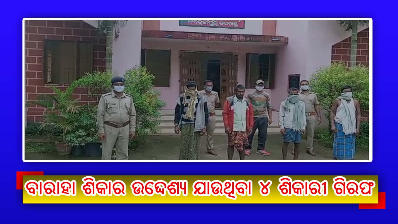 ବାରାହା ଶିକାର ଉଦ୍ଦେଶ୍ୟରେ ଯାଇଥିବା ୪ ଶିକାରୀ ଗିରଫ