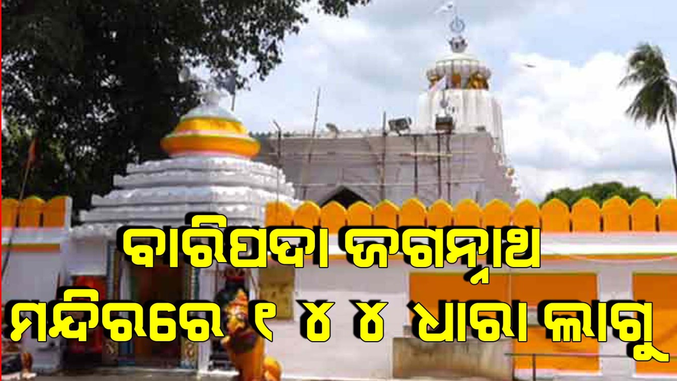 ବାରିପଦା: ପୁରୀ ରଥ ଯାତ୍ରାର ପର ଦିନ ଦ୍ୱିତୀୟ ଶ୍ରୀକ୍ଷେତ୍ର ବାରିପଦାରେ ହୋଇଥାଏ ରଥଯାତ୍ରା ହୋଇଥାଏ । ହେଲେ କରୋନା କଟକଣା ଯୋଗୁ ସୁପ୍ରିମକୋର୍ଟଙ୍କ ନିର୍ଦ୍ଦେଶ ଅନୁଯାୟୀ, ଆଜି ରଥଯାତ୍ରା ହୋଇପାରି ନ ଥିଲେ ବି ମନ୍ଦିର ସମ୍ମୁଖରେ ଦେଖାଦେଇଥିଲା ଭିଡ଼। ଭିଡ଼କୁ ନିୟନ୍ତ୍ରଣକୁ ଆଣିବାକୁ ବାରିପଦା ଜଗନ୍ନାଥ ମନ୍ଦିର ଚାରିପାଖରେ ୧୪୪ ଧାରା ଜାରି କଲା ଜିଲ୍ଲା ପ୍ରଶାସନ । ମନ୍ଦିର ଚାରିପାଖ ୫ ଶହ ମିଟର ଦୂରତା ପର୍ୟ୍ୟନ୍ତ ୧୪୪ ଧାରା ଜାରି ହୋଇଛି ।