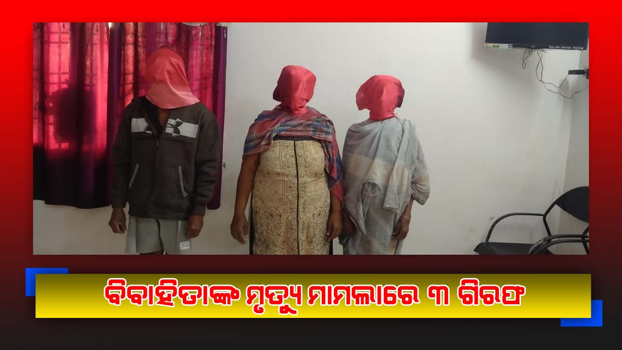 ବିବାହିତାଙ୍କ ମୃତୁ୍ୟ ମାମଲାରେ ୩ ଗିରଫ