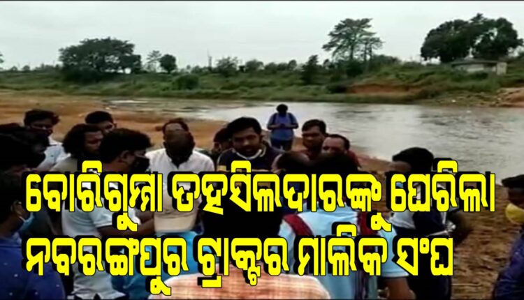 ନବରଙ୍ଗପୁର: ଇନ୍ଦ୍ରାବତୀ ନଦୀରୁ ବାଲି ଉଠାଣକୁ ନେଇ ନବରଙ୍ଗପୁର ଟ୍ରାକ୍ଟର ମାଲିକ ସଂଘ ବୋରିଗୁମ୍ମା ତହସିଲଦାରଙ୍କୁ ୩ ଘଣ୍ଟା ଧରି ନଦୀପଠାରେ ଘେରିଥିଲା । ବୋରିଗୁମ୍ମା ତହସିଲ ଅଞ୍ଚଳରୁ ବାଲି ଚୋରା ଚାଲାଣ ହେଉଥିବା ଅଭିଯୋଗରେ ତହସିଲଦାର ଟ୍ରାକ୍ଟରୁ ଫାଇନ୍ ଆଦାୟ ପାଇଁ ପ୍ରସ୍ତୁତ ହୋଇଥିଲେ । କିନ୍ତୁ ଉକ୍ତ ଅଞ୍ଚଳ ନବରଙ୍ଗପୁର ତହସିଲ ଅନ୍ତର୍ଗତ ଥିବା ସଂଘ ପକ୍ଷରୁ କୁହାଯାଇଥିଲା । ଶେଷରେ ନବରଙ୍ଗପୁର ତହସିଲ କର୍ମଚାରୀ ଘଟଣାସ୍ଥଳରେ ପହଞ୍ଚି ନଦୀର ସୀମା ଚିହ୍ନଟ କରିଥିଲେ । ଉକ୍ତ ବାଲିପଠା ନବରଙ୍ଗପୁର ତହସିଲ ଅଞ୍ଚଳର ବୋଲି ସ୍ପଷ୍ଟ ହେବା ପରେ ବୋରିଗୁମ୍ମା ତହସିଲାଦର ସୁବାସ ଚନ୍ଦ୍ର ରଇତଙ୍କୁ ଛାଡିଥିଲା ସଂଘ ।