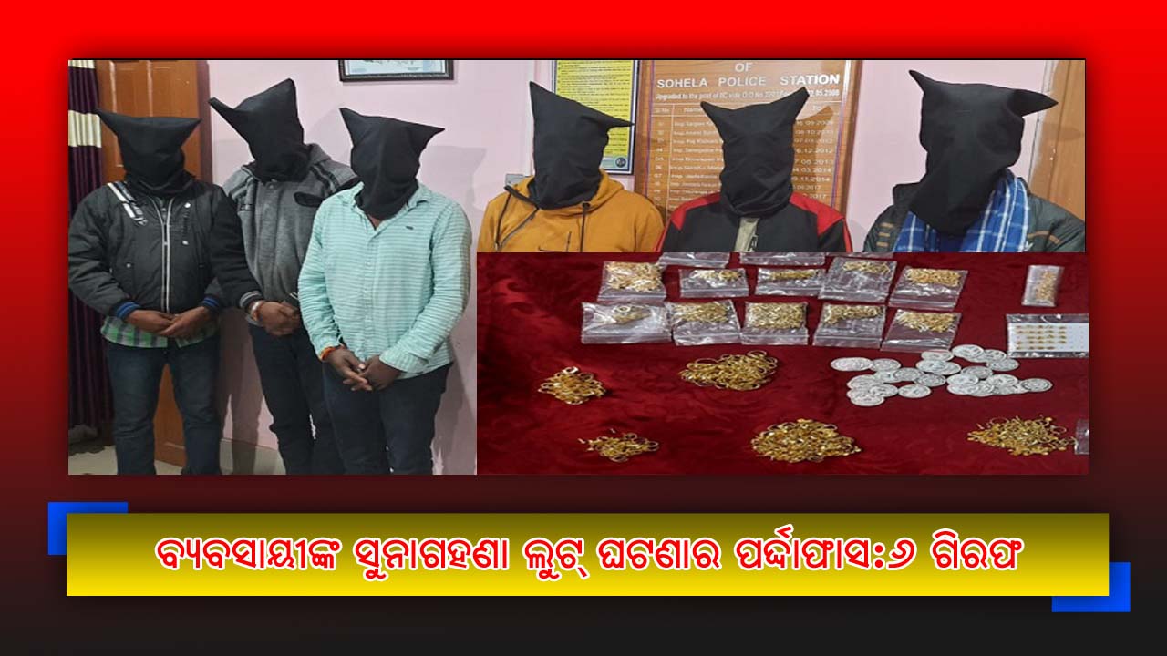 ବ୍ୟବସାୟୀଙ୍କ ସୁନାଗହଣା ଲୁଟ୍ ଘଟଣାର ପର୍ଦ୍ଧାଫାସ:୬ ଗିରଫ
