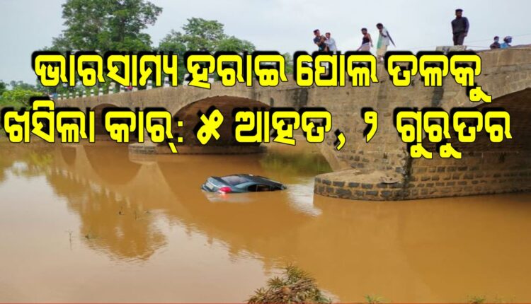 ଭାରସାମ୍ୟ ହରାଇ ପୋଲ ତଳକୁ ଖସିଲା କାର୍ : ୫ ଆହତ, ୨ ଗୁରୁତର