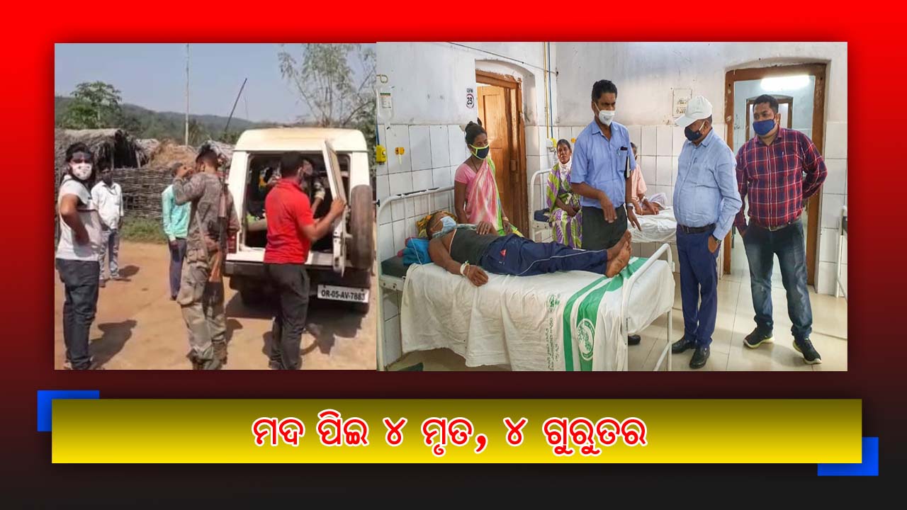 ମିଳିଥିବା ସୂଚନା ଅନୁଯାୟୀ, ପୁରୁଣାକାଟ ଥାନା ଶରଧାପୁର ପଞ୍ଚାୟତର ପଥରଗଡ଼ ଗ୍ରାମରେ ରବିବାର ଏକ ନିର୍ମାଣାଧୀନ ଘରର ଛାତ ପଡ଼ିଥିଲା । କାମ ସରିବା ପରେ ନିୟୋଜିତ ଶ୍ରମିକଙ୍କର ଭୋଜିଭାତ ହୋଇଥିଲା । ଶ୍ରମିକମାନେ ଠିକାଦାର ଯୋଗାଇଥିବା ଦେଶୀ ରନ୍ଧାମଦ ପିଇଥିଲେ । ଘରକୁ ଫେରିବା ପରେ ସନ୍ଧ୍ୟାରେ ହଠାତ୍ ଅସୁସ୍ଥ ହୋଇ ପଡ଼ିଥିଲେ କାଇରା ପଧାନ (୨୦) । କିଛି ଘଣ୍ଟା ଯନ୍ତ୍ରଣାରେ ଛଟପଟ ହୋଇ ଆଖି ବୁଜିଥିଲେ କାଇରା । ବିଳମ୍ବିତ ରାତିରେ ସମାନ ଲକ୍ଷଣ ଥାଇ ଟୁକୁନା ପଧାନ (୩୦)ଙ୍କର ମୃତୁ୍ୟ ହୋଇଥିଲା । ସୋମବାର ସକାଳେ ଗ୍ରାମର ଶଶିଭୂଷଣ ଦେହୁରୀ (୩୨), ବାସୁଦେବ ପଧାନ (୩୫) ବସନ୍ତ ଦେହୁରୀ (୪୦)ଙ୍କୁ ଗୁରୁତର ଅବସ୍ଥାରେ ପରିବାର ଲୋକେ ଅନୁଗୁଳ ଡାକ୍ତରଖାନାରେ ଭର୍ତ୍ତି କରିଥିଲେ । ଏଠାରେ ଚିକିତ୍ସାଧୀନ ଅବସ୍ଥାରେ ଗତକାଲି ଶଶୀଭୂଷଣଙ୍କର ମୃତୁ୍ୟ ହୋଇଥିବା ବେଳେ ଅନ୍ୟ ଦୁଇ ଜଣ ଚିକିତ୍ସାଧୀନ ଅଛନ୍ତି । ସେପଟେ ଘଟଣାର ଦୁଇ ଦିନ ପରେ ମଙ୍ଗଳବାର ପ୍ରମୋଦ ସାହୁ (୪୨), ରୋହନ୍ ଓରଫ ରଞ୍ଜନ ସାହୁ (୪୬) ଓ ସୁଶାନ୍ତ ଦେହୁରୀ (୩୨)ଙ୍କୁ ସଙ୍କଟାପନ୍ନ ଅବସ୍ଥାରେ ଜିଲ୍ଲା ମୁଖ୍ୟ ଡାକ୍ତରଖାନାରେ ଭର୍ତ୍ତି କରାଯାଇଥିଲା । ସେମାନଙ୍କର ଚିକିତ୍ସା ଚାଲିଥିବା ବେଳେ ପ୍ରମୋଦଙ୍କର ମୃତୁ୍ୟ ଘଟିଛି । ମୃତକଙ୍କ ଶବ ବ୍ୟବଚ୍ଛେଦ କରାଯାଇଛି ।