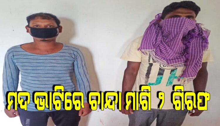 ଲକ୍ଷ୍ମୀପୁର: ଲକ୍ଷ୍ମୀପୁର ବ୍ଲକ କାକିରିଗୁମ୍ମା ଥାନା ଅଞ୍ଚଳର ଏକ ସରକାରୀ ମଦଭାଟିରୁ ଚାନ୍ଦା ମାଗିବା ଅଭିଯୋଗରେ ପୁଲିସ ୨ଜଣକୁ ଗିରଫ କରିଛି । ଗିରଫ ବ୍ୟକ୍ତିମାନେ ହେଲେ କାକିରିଗୁମ୍ମାର ଶିବ ହିଆଲ ଓ ବଡନେର୍କା ଗାଁର କୃଷ୍ଣ ମହାନନ୍ଦିଆ । ଥାନା କେସ ନମ୍ବର ୬୩/୨୧ରେ ଉଭୟଙ୍କୁ କୋର୍ଟ ଚାଲାଣ କରାଯାଇଥିବା ଥାନା ଅଧିକାରୀ ଉଲ୍ଲାସକୁମାର ରାଉତ କହିଛନ୍ତି । ପୁଲିସ ସୂତ୍ରରୁ ପ୍ରକାଶ ଯେ, ଶୁକ୍ରବାର ଅଭିଯୁକ୍ତମାନେ କାକିରିଗୁମ୍ମାର ଏକ ସରକାରୀ ସ୍ୱୀକୃତିପ୍ରାପ୍ତ ମଦଭାଟିକୁ ଯାଇଥିଲେ । ସେଠାରେ ସେମାନେ ଚାନ୍ଦା ମାଗିଥିଲେ । ମାଲିକ ଚାନ୍ଦା ନଦେବାରୁ ଭାଟିର ଜିନିଷପତ୍ର ଭଙ୍ଗାରୁଜା କରିଥିଲେ । ପରେ ମାଲିକଙ୍କ ଅଭିଯୋଗକ୍ରମେ ପୁଲିସ ଉଭୟଙ୍କୁ ଗିରଫ କରିଥିଲା ।
