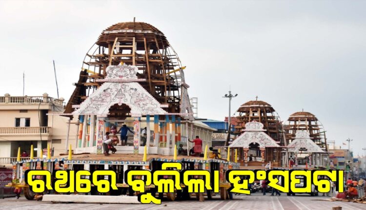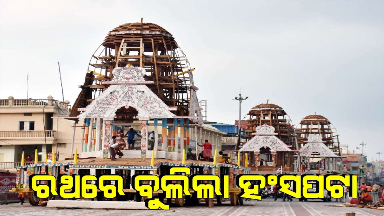 ପୁରୀ: ଶେଷ ପର୍ଯ୍ୟାୟରେ ପହଞ୍ଚିଲାଣି ରଥ ନିର୍ମାଣ । ରବିବାର ତିନି ରଥରେ ହଂସପଟା ଲାଗିଛି । ରଥ ଚତୁଃପାଶ୍ୱର୍ରେ ହଂସପଟା ପିଟାଯାଇଛି । ଠେକରା ବାଡ଼ ତଳକୁ ରହିଥାଏ ହଂସପଟା । ପଟା ଚଟାଣକୁ ଲାଗି ହଂସପଟା ସଂଯୋଗ ହୋଇଛି । ଅଶ୍ୱରେ ରଙ୍ଗ ଦିଆ ଆରମ୍ଭ ହୋଇଛି । ରଥତ୍ରୟରେ ଅଶ୍ୱ ଲାଗିବାକୁ ଇଶ ଓ ଜୁଆଳି ପ୍ରସ୍ତୁତ । ଚାରପରିଛା କାଠରେ ଦୁଇଟି ଇଶ ଲାଗୁଛି । ପରେ ଇଶର ବେକରେ ଜୁଆଳି ଲାଗିବ । ଜୁଆଳିରେ ଅଶ୍ୱଙ୍କୁ ଲଗାଯିବ ।