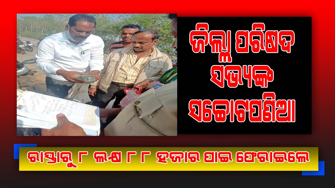 ସୂଚନା ଅନୁଯାୟୀ, ଜଗତସିଂହପୁର ଜିଲ୍ଲା କୁଜଙ୍ଗ ବ୍ଲକ ଗୋବର୍ଦ୍ଧନପୁରର ଗୋପୀନାଥ ଦାସ(୫୦) ତାଙ୍କ ବାଇକ୍ ଡିକିରେ ୮ ଲକ୍ଷ ୮୮ ହଜାର ଟଙ୍କା ଧରି ଆଜି ମଧ୍ୟାହ୍ନରେ ବାଇକ୍ରେ କୁଜଙ୍ଗରୁ ଭୁବନେଶ୍ୱର ଅଭିମୁଖେ ଯାଉଥିଲେ । କଟକ-ପାରାଦୀପ ରାସ୍ତା କମରପଦା ନିକଟରେ କୌଣସି କାରଣରୁ ସେ ଚେତାଶୂନ୍ୟ ହୋଇ ରାସ୍ତାରେ ପଡି ଯାଇଥିଲେ । ଏହି ସମୟରେ ଉକ୍ତ ରାସ୍ତାର ବିପରୀତ ପାଶ୍ୱର୍ରେ କଟକରୁ ପାରାଦୀପ ଅଭିମୁଖେ କାର୍ରେ ଯାଉଥିବା କଟକ ଜିଲ୍ଲା ୭ ନମ୍ବର ଜୋନ୍ର ଜିଲ୍ଲାପରିଷଦ ସଦସ୍ୟ ବିଳାସ ମଲ୍ଲିକ ଅଚେତ ଅବସ୍ଥାରେ ଜଣେ ବ୍ୟକ୍ତି ପଡ଼ିଥିବା ଦେଖି ତତ୍କ୍ଷଣାତ ଓହ୍ଲାଇ ଗୋପୀନାଥଙ୍କୁ ଉଦ୍ଧାର କରିବା ସହିତ ପାଣିମାରି ସାଷ୍ଟାଙ୍ଗ କରିଥିଲେ । ଗୋପୀନାଥ ବାଇକ୍ରୁ ପଡିଯିବାରୁ ଡିକିରେ ଥିବା ଟଙ୍କା ମଧ୍ୟ ରାସ୍ତାରେ ବିଛାଡି ହୋଇ ପଡିଥିଲା । ଶ୍ରୀ ମଲ୍ଳିକ ଟଙ୍କାଗୁଡିକୁ ଏକାଠି କରି କିଶୋରନଗର ଥାନାକୁ ଖବର ଦେଇଥିଲେ । ପୁଲିସ ଘଟଣାସ୍ଥଳରେ ପହଞ୍ଚô ଯୁବକଙ୍କଠାରୁ ତାଙ୍କ ପରିବାର ସଦସ୍ୟଙ୍କ ଫୋନ୍ ନମ୍ବର ସଂଗ୍ରହ କରି ଘରକୁ ଖବର ଦେଇଥିଲେ । ଖବର ପାଇ ଗୋପୀନାଥଙ୍କ ପତ୍ନୀ ଏବଂ ପୁତୁରା ସେଠାରେ ପହଞ୍ଚôଥିଲେ । ପୁଲିସ, ପରିବାର ସଦସ୍ୟ ଏବଂ ଜିଲ୍ଲାପରିଷଦ ସଦସ୍ୟଙ୍କ ଉପସ୍ଥତିରେ ଟଙ୍କା ଗଣତି କରାଯିବାରୁ ସେଥିରେ ୮ ଲକ୍ଷ ୮୮ ହଜାର ଟଙ୍କା ଥିବା ଜଣାପଡିଥିଲା । ପରେ ପୁଲିସ ପରିବାର ସଦସ୍ୟଙ୍କଠାରୁ ଏକ ଲେଖା ରଖିବା ପରେ ତାଙ୍କୁ ଏହି ଟଙ୍କା ଫେରସ୍ତ ଦିଆଯାଇଥିଲା । ପରିବାର ସଦସ୍ୟ ଗୋପୀନାଥଙ୍କ ସହିତ ଟଙ୍କା ଧରି ପୁଣି କୁଜଙ୍ଗ ଅଭିମୁଖେ ଫେରି ଯାଇଥିଲେ । ପ୍ରଚଣ୍ଡ ରୌଦ୍ରତାପ ସହ୍ୟ କରିନପାରି ସେ ରାସ୍ତାରେ ଅଚେତ ହୋଇ ପଡି ଯାଇଥିବା ସନେ୍ଦହ କରାଯାଉଛି । ଜିଲ୍ଲା ପରିଷଦ ସଭ୍ୟ ଶ୍ରୀ ମଲିକଙ୍କ ସହିତ ଧରିଣା ଗ୍ରାମ ପଞ୍ଚାୟତର ପୂର୍ବତନ ସମିତି ସଭ୍ୟ ପ୍ରଶାନ୍ତ ପ୍ରଧାନ ଓ ଥାନା ଅଧିକାରୀ ବାମଦେବ ସ୍ୱାଇଁଙ୍କ ଉପସ୍ଥିତିରେ ସବୁକିଛି କାର୍ଯ୍ୟ କରାଯାଇଥିଲା । ଜିଲ୍ଲା ପରିଷଦ ସଭ୍ୟଙ୍କ ମାନବିକତା ଓ ସଚ୍ଚୋଟ ପଣିଆକୁ କଟକ ସଦର ବ୍ଲକ ଅଞ୍ଚଳବାସୀ ପ୍ରଶଂସା କରିଛନ୍ତି ।