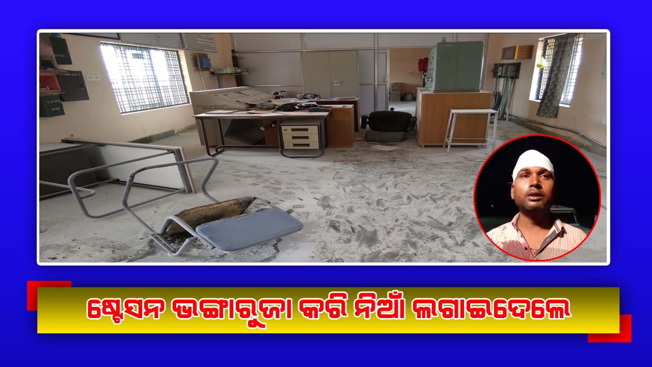 ଷ୍ଟେସନ ଭଙ୍ଗାରୁଜା କରି ନିଅାଁ ଲଗାଇଦେଲେ