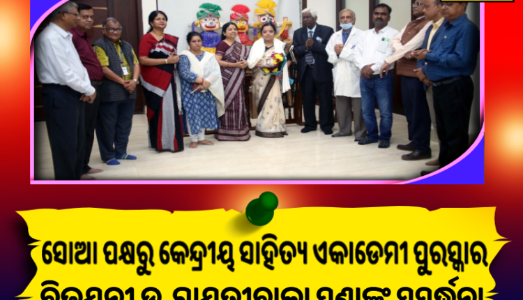 ସୋଆ ପକ୍ଷରୁ କେନ୍ଦ୍ରୀୟ ସାହିତ୍ୟ ଏକାଡେମୀ ପୁରସ୍କାର ୨୦୨୨ ବିଜୟନୀ ଡ. ଗାୟତ୍ରୀବାଳା ପଣ୍ଡାଙ୍କୁ ସମ୍ବର୍ଦ୍ଧନା
