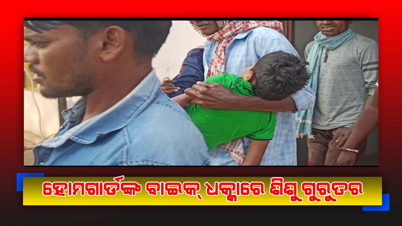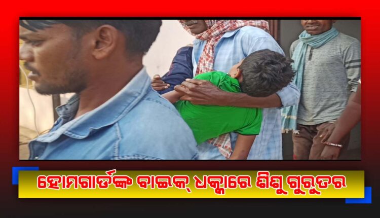 ପାପଡାହାଣ୍ଡି,(ବି.ବି.ନୁ୍ୟଜ): ପାପଡାହାଣ୍ଡି ଥାନା ବାବାଜୀଗୁଡା ଛକରେ ସୋମବାର ଜଣେ ହୋମଗାର୍ଡଙ୍କ ବାଇକ୍ ଧକ୍କାରେ ଜଣେ ଶିଶୁ ଗୁରୁତର ହୋଇଛି । ପିଲାଟି ହେଲା ସ୍ଥାନୀୟ ଲଡୁଗାଁ ମାଝି ସାହିର ସୋମ ବାଘ(୮) । ପିଲାଟିକୁ ନବରଙ୍ଗପୁର ଜିଲ୍ଲା ମୁଖ୍ୟ ଚିକିତ୍ସାଳୟରେ ଭର୍ତ୍ତି କରାଯାଇଛି ।