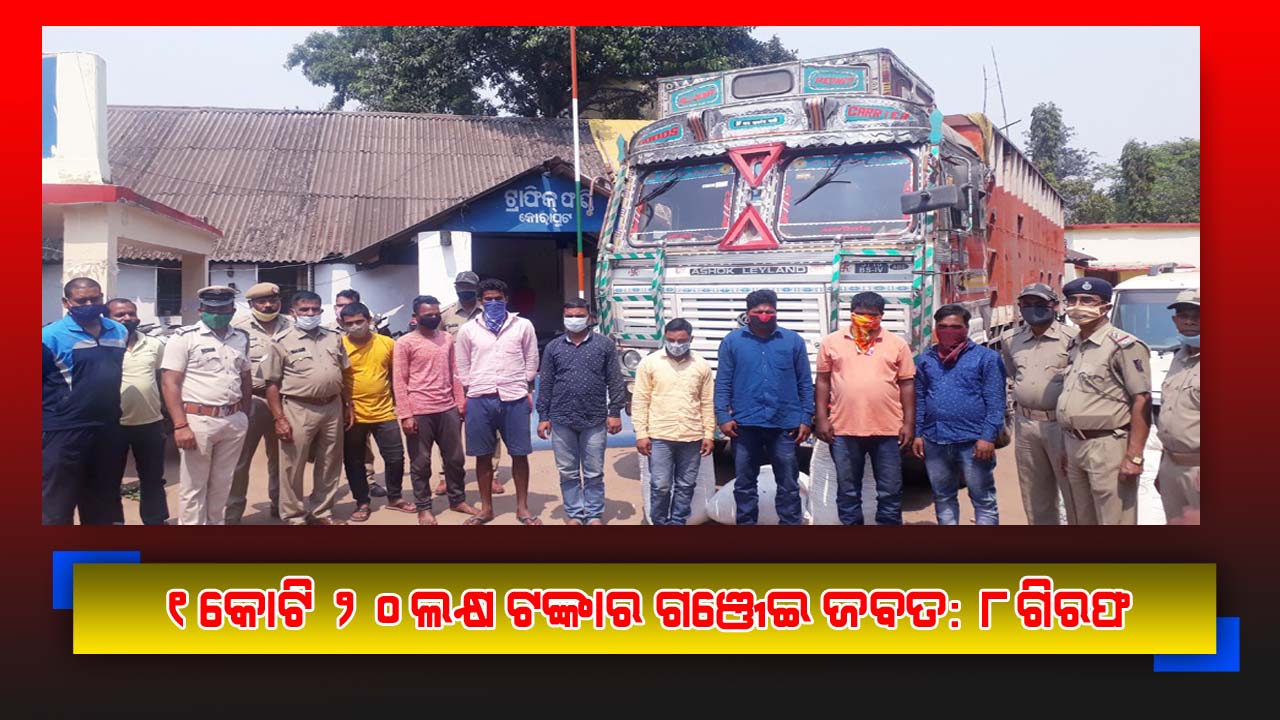 କୋରାପୁଟ,(ବି.ବି.ନୁ୍ୟଜ): କୋରାପୁଟ ଜିଲ୍ଲାରୁ ଗୋଟିଏ ଦିନରେ ଦୁଇଟି ସ୍ଥାନରୁ ଜବତ କରାଯାଇଛି ୧ କୋଟି ୨୦ଲକ୍ଷ ଟଙ୍କାର ଗଞ୍ଜେଇ । ଏହି କାରବାରରେ ସମ୍ପୃକ୍ତ ୮ଜଣଙ୍କୁ ଗିରଫ କରାଯାଇଛି । ଗିରଫ ମାଫିଆମାନେ ହେଲେ ବିହାର ବrର ଜିଲ୍ଲା ସିମ୍ରି ଥାନା ଅଞ୍ଚଳର ଟ୍ରକ ଡ୍ରାଇଭର ସତ୍ୟନାରାୟଣ ଯାଦବ, ସଂଜୀବ କୁମାର ଠାକୁର ଏବଂ ପଟ୍ଟାଙ୍ଗି ଥାନା କରଞ୍ଜଗୁଡ଼ା ଗାଁର ମାଣିକ ଅଡ଼କଟିଆ, ବାବୁରାଓ ଖିଲ, ପଣ୍ଡେଉ ଗାଁର ରାଜେଶ ଅକଟିଆ, ଗୋରାଦୁସୁରା ବାରିକ, ସେମିଳିଗୁଡ଼ା ଥାନା ନେହରୁନଗରର ଆଦିତ୍ୟ ସାହୁ ଏବଂ ସୁନାବେଡ଼ା ଥାନା ଚର୍ଚ୍ଚ କଲୋନିର ନିକୋଦିନ ତୁରୁକ୍ । ପଟ୍ଟାଙ୍ଗି ଥାନା ଅଞ୍ଚଳରୁ ଅଭିନବ ଢ଼ଙ୍ଗରେ ପିଚୁ ଟ୍ୟାଙ୍କର ଓ ଅଦା ବୋଝେଇ ଟ୍ରକରେ ଏହି ଗଞ୍ଜେଇ ବିହାରକୁ ଚାଲାଣ ହେଉଥିଲା । ଗଞ୍ଜେଇ ପରିବହନରେ ବ୍ୟବହୃତ ଏକ ପିଚୁ ଟ୍ୟାଙ୍କର, ଗୋଟିଏ ଟ୍ରକ, ବୋଲେରୋ, କାର ଓ ବାଇକ୍କୁ ଜବତ କରାଯାଇଥିବା ପୁଲିସ କହିଛି । ୫୦ଟି ବ୍ୟାଗରେ ୧୭୫୨କେଜି ୨ଶହ ଗ୍ରାମ ଗଞ୍ଜେଇ ରହିଥିଲା । ଜବତ ଗଞ୍ଜେଇର ମୂଲ୍ୟ ୮୫ଲକ୍ଷରୁ ଅଧିକ ହେବ ବୋଲି ଆକଳନ କରାଯାଇଛି । ଜବତ ଟ୍ରକରୁ ଗଞ୍ଜେଇ ସହିତ ୩୫ କେଜି ଲେଖାଏଁ ଓଜନ ଥିବା ୧୨୬ ବ୍ୟାଗ ଅଦା ମଧ୍ୟ ଜବତ କରାଯାଇଥିବା ପୁଲିସ କହିଛି । ଟାଉନ ଥନାରେ ଏନେଇ ମାମଲା ରୁଜୁ କରାଯାଇ ୮ଜଣଙ୍କୁ ଗିରଫ କରାଯାଇଛି । ଅନ୍ୟ ଏକ ଘଟଣାରେ ସେମିଳିଗୁଡ଼ା ପୁଲିସ କୁତୁଗାଁ ଛକରୁ ଏକ ପିଚୁ ଟ୍ୟାଙ୍କରରୁ ୬୭୫ କେଜି ଗଞ୍ଜେଇ ଜବତ କରିଛି । ଏହାର ଅନୁମାନିକ ମୂଲ୍ୟ ୩୪ ଲକ୍ଷ ଟଙ୍କା ହେବ ।