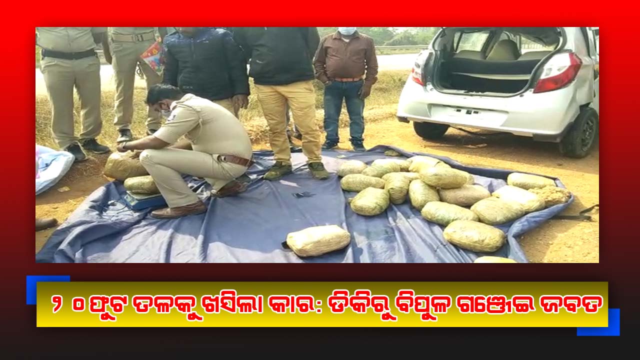 ଜଳେଶ୍ବର : ବାଲେଶ୍ବର ଜିଲ୍ଲା ବସ୍ତା ଥାନା ୬୦ନଂ ଜାତୀୟ ରାଜପଥ କିଆପଣସି ଛକ ନିକଟରେ ଏକ ବାଇକକୁ ଧକ୍କା ଦେଇ ନୟନଜୋରୀକୁ ଖସି ପଡିଥିବା କାରରୁ ବିପୁଳ ପରିମାଣର ଗଞ୍ଜେଇ ଜବତ କରିଛି ବସ୍ତା ପୋଲିସ । ଶୁକ୍ରବାର ଅପରାହ୍ନରେ ଇନ୍ଦିରା ଛକ ନିକଟରେ ଏକ ବାଇକକୁ ଧକ୍କା ଦେଇ ୨୦ ଫୁଟ ତଳକୁ ଖସି ଯାଇଥିଲା । ପରେ ଖବର ପାଇ ସ୍ଥାନୀୟ ଲୋକେ କାରରେ ଥିବା ଲୋକଙ୍କୁ ଉଦ୍ଧାର କରିବା ସହ ବସ୍ତା ଗୋଷ୍ଠୀ ସ୍ବାସ୍ଥ୍ୟ କେନ୍ଦ୍ରକୁ ପଠାଇ ଥାନାକୁ ଖବର ଦେଇଥିଲେ ।