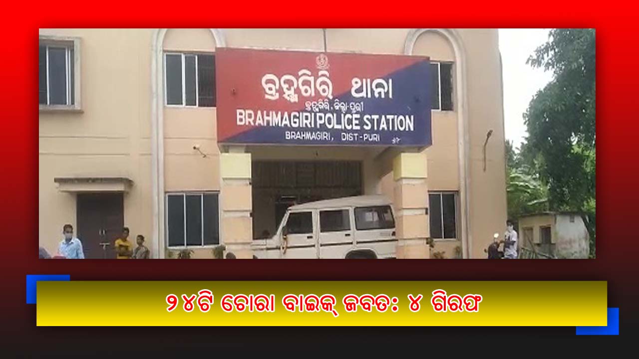 ବ୍ରହ୍ମଗିରି : ପୁରୀ ବ୍ରହ୍ମଗିରି ଅଞ୍ଚଳରୁ ୨୪ଟି ଚୋରା ବାଇକ୍ ଜବତ କରିଛି ପୋଲିସ । ଏହାସହ ୪ ଜଣଙ୍କୁ ଗିରଫ କରିଛି । ବ୍ରହ୍ମଗିରିର ବାରବାଟୀ, ରେଣ୍ଢା, ନହରପଦା ଏବଂ ମିର୍ଜାପୁର ଅଂଚଳରୁ ଏହି ବାଇକ୍ ସବୁ ଉଦ୍ଧାର ହୋଇଥିବା ପୋଲିସ ସୂଚନା ଦେଇଛି । ବାଇକ୍ ଚୋରି ଅଭିଯୋଗରେ ୪ ଜଣଙ୍କୁ ଆଜି କୋର୍ଟ ଚାଲାଣ କରିଛି ପୋଲିସ ।