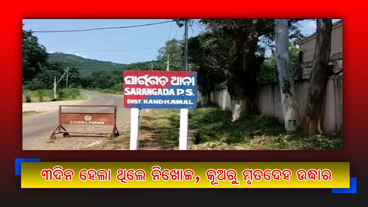ବାଲିଗୁଡ଼ା: ତିନିଦିନ ପରେ ନିଖୋଜ ଯୁବକଙ୍କ ଗଳିତ ଶବ ଉଦ୍ଧାର । ମୃତକ ବାହାଡାପଦାଲ ଶରଣ ପଞ୍ଜର ବୋଲି ଜଣାପଡିଛି । କନ୍ଧମାଳ ଜିଲ୍ଲା ସାରଙ୍ଗଗଡ଼ର ଅଞ୍ଚଳର ଘଟଣା । ଘଟଣାସ୍ଥଳରେ ପୋଲିସ ପହଞ୍ଚି ତଦନ୍ତ ଆରମ୍ଭ କରିଛି । ସେପଟେ ପରିବାର ପକ୍ଷରୁ ହତ୍ୟା ଅଭିଯୋଗ ଆସିଛି ।
