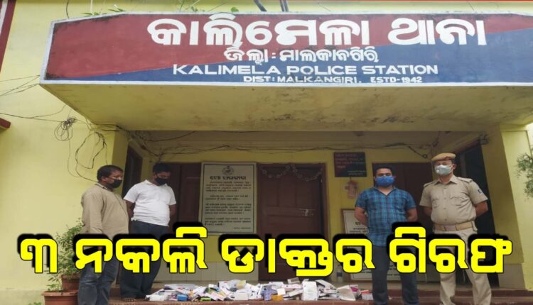 ମାଲକାନଗିରି: କରୋନା କାଳରେ ମାତିଛନ୍ତି କ୍ୱାକ୍ । ଡାକ୍ତର ପରିଚୟ ଦେଇ ନିରୀହ ଆଦିବାସୀ ଲୋକଙ୍କୁ ଠକୁଛନ୍ତି । ଏଭଳି ୩ ଜଣ ଠକ ନକଲି ଡାକ୍ତରଙ୍କୁ କାଲିମେଳା ପୁଲିସ୍ ଗିରଫ କରିଛି । ଗିରଫ ୩ ଅଭିଯୁକ୍ତ ନକଲି ଡାକ୍ତର ହେଉଛନ୍ତି ଶଶାଙ୍କ ପାଇକ, ପରେଶ ବାଓଲି ଓ ସଚିନ ପରମାଣିକ । ଏସ୍ପି ରିଶିକେଶ ଡି ଖିଲାରୀଙ୍କ ନିଦେ୍ର୍ଧଶକ୍ରମେ କାଲିମେଳା ପୁଲିସ୍ ଏମ୍ଭି୭୩, ଏମ୍ପିଭି୧୪, ଏମ୍ପିଭି ୧୧ ଗ୍ରାମ ଉପରେ ଚଢ଼ଉ କରି ଅଭିଯୁକ୍ତଙ୍କୁ ଗିରଫ କରିଥିଲା ।