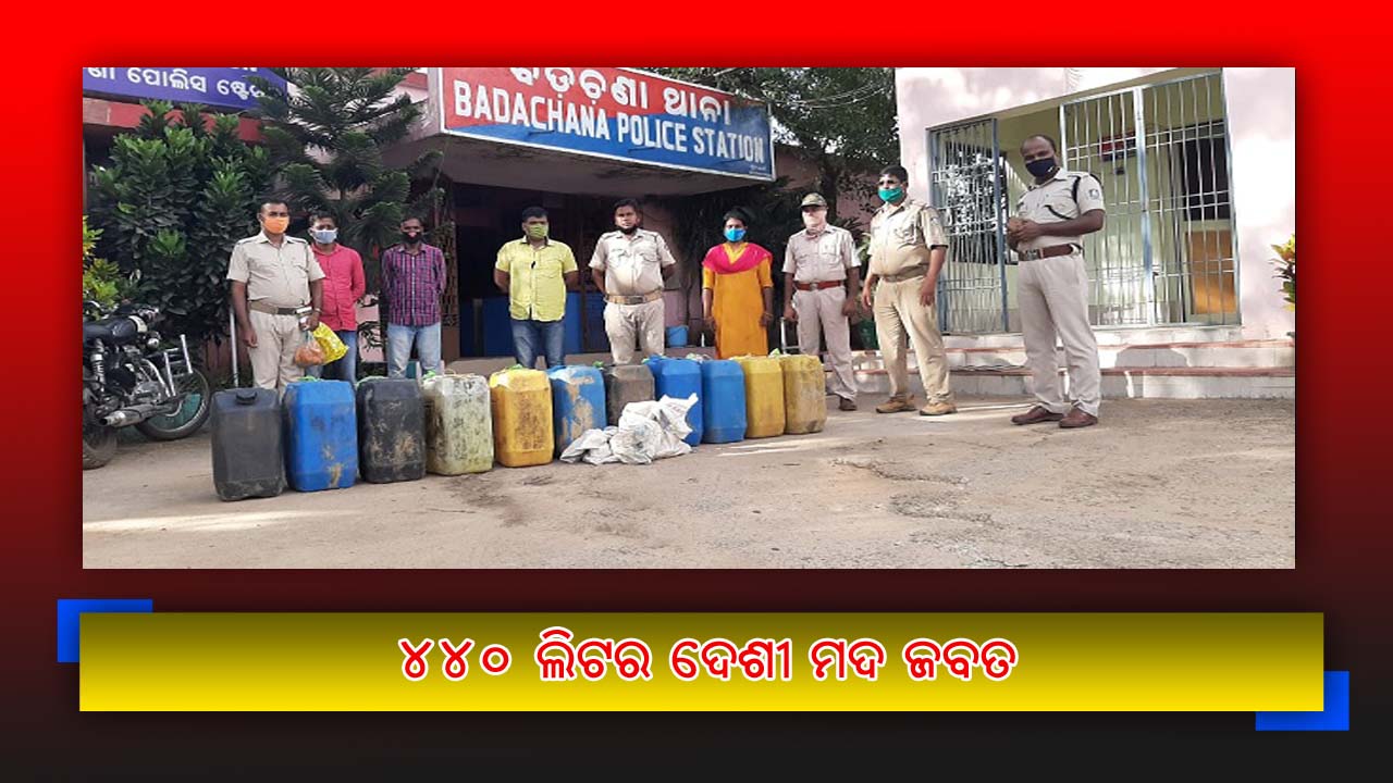 ବଡ଼ଚଣା ଥାନା ପୋଲିସ ମଙ୍ଗରାଜପୁର ଗାଁରେ ଏକ ଧାନ ବିଲର କାଦୁଅ ମଧ୍ୟରେ ଦେଶୀମଦ ଲୁଚାଇ ରଖାଯାଇଥିଲା । କୌଣସି ସୂତ୍ରରୁ ସୂଚନା ପାଇ ବଡଚଣା ଥାନା ଅଧିକାରୀଙ୍କ ନେତୃତ୍ୱରେ ଏକ ଟିମ୍ ଚଢାଉ କରିଥିଲା । ଏହି ଚଢାଉରେ ଦେଶୀ ମଦ ଭର୍ତ୍ତି ୧୧ଟି ବ୍ୟାରେଲ ଜବତ ହୋଇଛି । ଯେଉଁଥିରେ ୪୪୦ଲିଟର ଦେଶୀ ମଦ ଥିବା ପୋଲିସ ସୂଚନା ଦେଇଛି । ତେବେ ଏତେ ପରିମାଣର ମଦ କେଉଁଠୁ ଆସିଲା ଏବଂ ଏ କିଏ ଲୁଚାଇ ରଖିଥିଲା । ସେନେଇ ପୋଲିସ ତନାଘନା ଜାରି ରଖିଛି ।