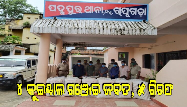 ୪ କୁଇଣ୍ଟାଲ ଗଞ୍ଜେଇ ଜବତ, ୫ ଗିରଫ