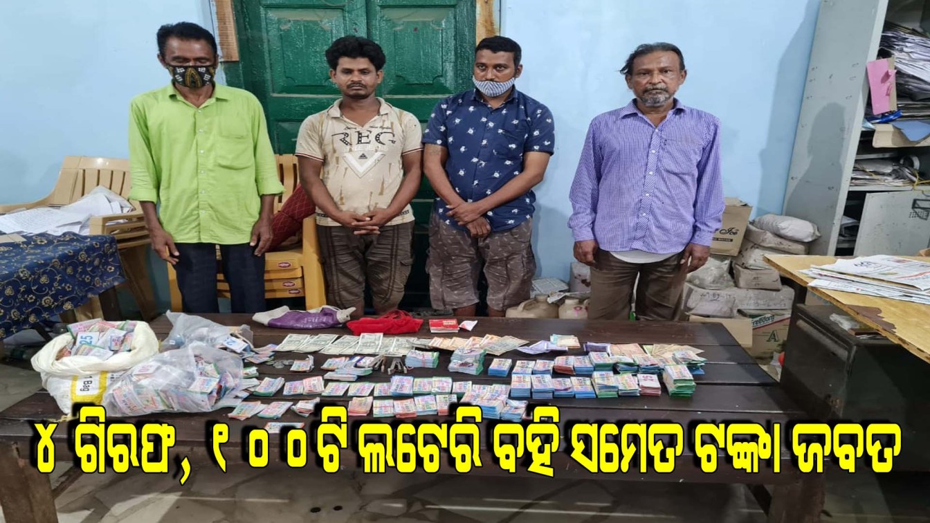 ବାରିପଦା: ଭାଗ୍ୟର ଦ୍ୱାହି ଦେଇ କୋଟି କୋଟି ଟଙ୍କାର ମୁନାଫାର ଲୋଭ ଦେଖାଇ ଲୋକଙ୍କୁ ସ୍ୱପ୍ନ ବିକି ବେଆଇନ ଭାବେ ଚାଲିଥିଲା ବେପାର ।ବାରିପଦା ସହରର ମଧ୍ୟସ୍ଥଳ ଲାଲବଜାର ଅଞ୍ଚଳରେ ଲଟେରି ଅଫିସ ଖୋଲି ଲଟେରି ଟିକଟ ବିକ୍ରି କରୁଥିବା ଏକ ଠକ ଦଳ ପୁଲିସ ପଞ୍ଝାରେ ପଡିଛନ୍ତି । ଏଥିରେ ସମ୍ପୃକ୍ତ ୪ ଅଭିଯୁକ୍ତଙ୍କ ଗିରଫ କରାଯିବା ସହ ୧୦୦ଟି ଲଟେରି ବହି ସମେତ ନଗଦ ୭ ହଜାର ୪୩୦ଟଙ୍କା ଜବତ କରିଥିଲେ ।ଗିରଫ ଅଭିଯୁକ୍ତ ମାନେ ହେଲେ ଟାଉନ ଥାନା ଅନ୍ତର୍ଗତ ସୁନଗଡିଆ ୱାର୍ଡ ନଂ ୨୦ ଅଞ୍ଚଳର କେଶବ ଜେନାଙ୍କ ପୁଅ କମଳ ଜେନା (୩୨), ଲାଲବଜାର ୱାର୍ଡ ନଂ ୧୦ ଅଞ୍ଚଳର ସ୍ୱର୍ଗତଃ ତାରାପ୍ରସାଦ ପ୍ରମାଳିକଙ୍କ ପୁଅ ବରୁଣ ପ୍ରମାଳିକ (୫୮), ପଡୋଶୀ ପଶ୍ଚିମବଙ୍ଗ ସ୍ଥିତ ମୁର୍ଶିଦାବାଦର ଅଜିତ୍ ହୋସେନ୍ (୩୩)ଏବଂ ପଶ୍ଚିମ ମେଦିନୀପୁରର ଶେକ୍ ଅହମ୍ମଦ ଉଲ୍ଲା(୫୨) । ସେମାନଙ୍କ ବିରୋଧରେ ୨୯୪(ଏ), ୪୨୦,୩୪ଆଇପିସିଆରଡବଲ୍ଲୁ୍ୟ ସେrନ୩ଓପିଜି ଆକ୍ଟ ଲାଗିଛି । ଗିରଫ ପରେ ସମସ୍ତଙ୍କ ବୟାନ ରେକର୍ଡ ପରେ କୋଭିଡ ଟେଷ୍ଟ କରି କୋର୍ଟ ଚାଲାଣ କରିଛି ଫୁଲିସ ।