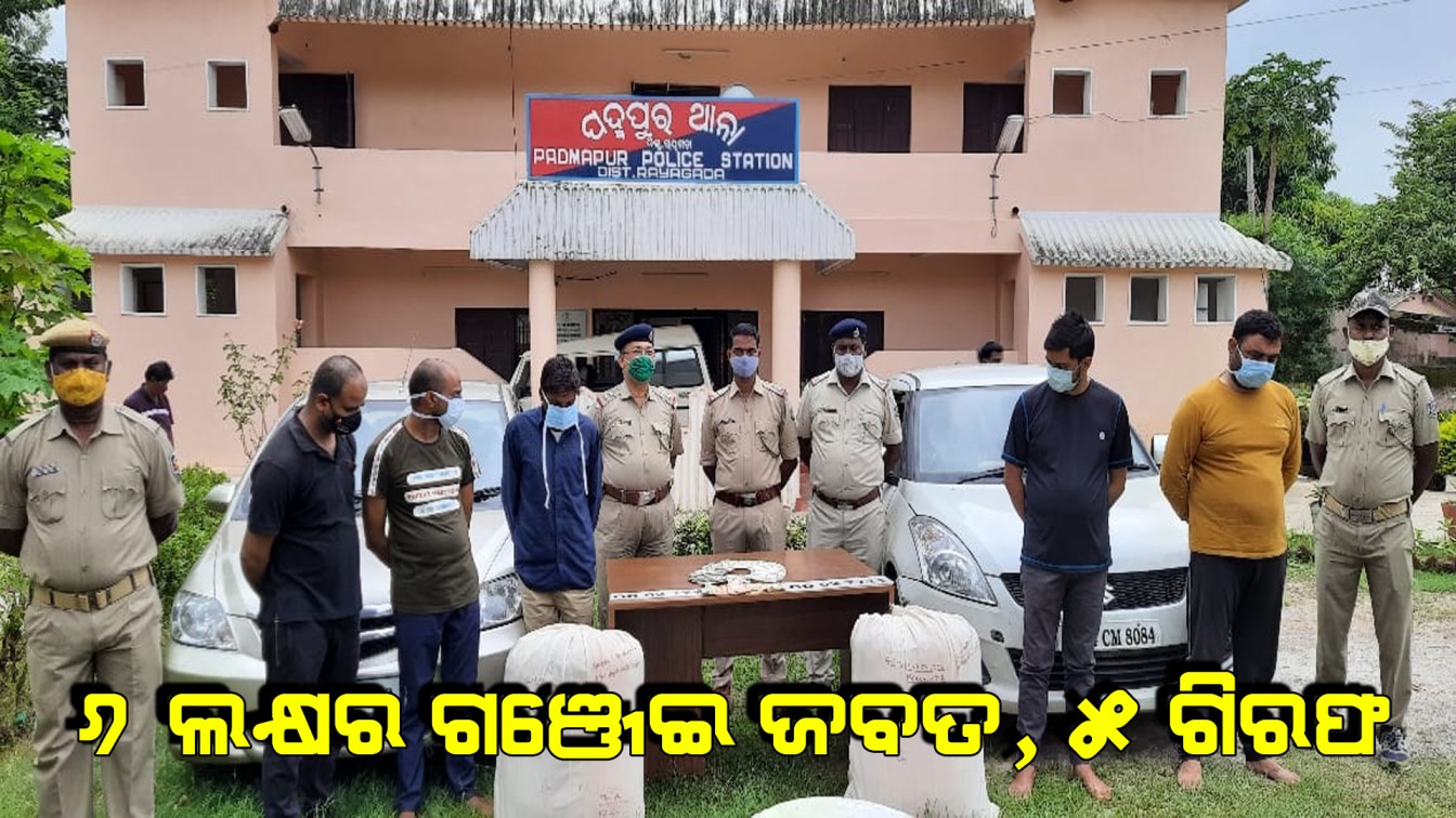 ପଦ୍ମପୁର: ପଦ୍ମପୁର ପୁଲିସ ପକ୍ଷରୁ ଆଜି ୬୦କେଜି ଗଞ୍ଜେଇ ଜବତ କରାଯିବା ସହ ଏହି କାରବାରରେ ସମ୍ପୃକ୍ତ ୫ଜଣଙ୍କୁ ଗିରଫ କରାଯାଇଛି । ଗିରଫମାନେ ହେଲେ ଉତ୍ତରପ୍ରଦେଶର ଆର୍.କୁମାର, କୁମାର ଶର୍ମା, ଅମିତକୁମାର, ଆଦିତ୍ୟ କୁମାର ଓ ରାହୁଲ କୁମାର । ସେମାନଙ୍କ ନିକଟରୁ ଦୁଇଟି କାର ସହ ନଗଦ ୯୧ ହଜାର ୮୫ଟଙ୍କା ଜବତ କରାଯାଇଥିବା ପୁଲିସ କହିଛି । ଜବତ ଗଞ୍ଜେଇର ଆନୁମାନିକ ମୂଲ୍ୟ ୬ଲକ୍ଷ ହେବ ବୋଲି ଆକଳନ କରାଯାଇଛି । ଶୁକ୍ରବାର ପାଟ୍ରେଲିଂ ସମୟରେ କେନ୍ଦୁଗୁଡା ଫାଣ୍ଡି ନିକଟରୁ ଦୁଇଟି କାରକୁ ସନେ୍ଦହ କରି ପୁଲିସ ଯାଞ୍ଚ କରିଥିଲା । ଗାଡିରେ ୬୦କେଜି ଗଞ୍ଜେଇ ଥିବା ଜଣାପଡିଥିଲା । ଅଭିଯୁକ୍ତମାନେ କେନ୍ଦୁଗୁଡାରୁ ଉତ୍ତରପ୍ରଦେଶକୁ ଗଞ୍ଜେଇ ନେଉଥିବା ଜେରା ବେଳେ ସ୍ୱୀକାର କରିଥିବା ଥାନା ଅଧିକାରୀ ବିଶ୍ୱରଞ୍ଜନ ଦାଶ କହିଛନ୍ତି । ଆଜି ଅଭିଯୁକ୍ତମାନଙ୍କୁ କୋର୍ଟ ଚାଲାଣ କରାଯାଇଛି ।