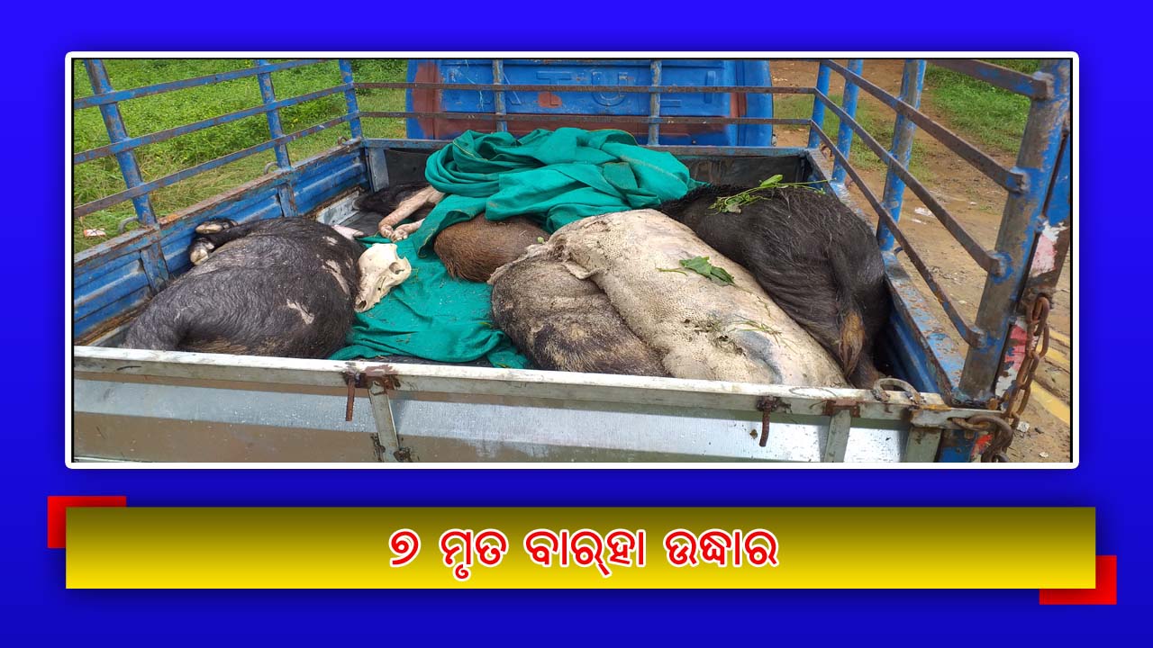 ଗୋପାଳପୁର, (ବି.ବି.ନୁ୍ୟଜ୍): ଭଞ୍ଜବିହାରସ୍ଥିତ ଶିଶୁ ବିଦ୍ୟା ମନ୍ଦିର ପଛପଟେ ଥିବା ଘଞ୍ଚ ବୁଦାରୁ ୭ ମୃତ ବାର୍ହାକୁ ମଙ୍ଗଳବାର ଉଦ୍ଧାର କରିଛି ବନ ବିଭାଗ । ସ୍ଥାନୀୟ ଲୋକେ ଦୁର୍ଗନ୍ଧ ହେଉଥିବାରୁ ଖୋଜାଖୋଜି କରିଥିଲେ । ଘଞ୍ଚ ବୁଦା ଭିତରେ କିଛି ବାର୍ହା ମରି ପଡିଥିବା ଦେଖି ବନ ବିଭାଗକୁ ଖବର ଦେଇଥିଲେ । ଫରେଷ୍ଟର ଘରମଣି ପାଣିଗ୍ରାହୀ ଏବଂ ବନ ବିଭାଗ କର୍ମଚାରୀ ଘଟଣାସ୍ଥଳରେ ପହଞ୍ଚି ମୃତ ବାର୍ହା ସବୁକୁ ଉଦ୍ଧାର କରି ସ୍ଥାନୀୟ କରାପଲ୍ଲୀ ପଶୁ ଚିକିତ୍ସା କେନ୍ଦ୍ରରେ ବ୍ୟବଚ୍ଛେଦ କରାଇଥିଲେ । ଏହା ପରେ ବାର୍ହାମାନଙ୍କ ମୃତଦେହକୁ ଗଭୀର ଗାତ କରି ସେଥିରେ ରାସାୟନିକ ଦ୍ରବ୍ୟ ପକାଇ ପୋତି ଦିଆଯାଇଥିଲା ।