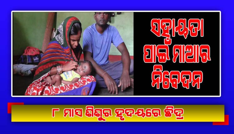 ଖଲ୍ଲିକୋଟ, (ବି.ବି.ନୁ୍ୟଜ): ଖଲ୍ଲିକୋଟ ବ୍ଲକ୍ ଅନ୍ତର୍ଗତ କେଶପୁର ନୂଆ ସାହିର କାର୍ତ୍ତିକ ସାହୁ । ପନôୀ ଆରତୀ ସାହୁ ଓ ୩ ବର୍ଷର ପୁଅ ପ୍ରଦେଶକୁ ନେଇ ତାଙ୍କ ସଂସାର । ବୃତ୍ତିରେ ଜଣେ ଦିନ ମଜୁରିଆ । କଷ୍ଟେମଷ୍ଟେ ଯାହା ଆୟ ହୁଏ, ସେଥିରେ ପରିବାର ସୁଖେଦୁଃଖେ ଚଳିଯାଉଥିଲା । ହେଲେ ୮ ମାସ ତଳେ ଜନ୍ମ ନେଇଥିଲା ଆଉ ଏକ ପୁତ୍ର ରାଜେଶ । ଗୋଟିଏ ପୁଅ ଥିବା ବେଳେ ଆଉ ଗୋଟିଏ ପୁଅ ଜନ୍ମ ନେବାରୁ ଆରତୀ ଓ କାର୍ତ୍ତିକ ଖୁସି ହୋଇ ଯାଇଥିଲେ । ତେବେ ସେହି ଖୁସି ଯେ ଅଳ୍ପ ଦିନର ତାହା ଜାଣି ନଥିଲେ ସେମାନେ । ଯେମିତି ରାଜେଶର ବୟସ ବଢିଲା ତାସହ ସ୍ୱାସ୍ଥ୍ୟ ସମସ୍ୟା ବଢି ଚାଲିଲା । ବାପା ମାଆ ରାଜେଶକୁ ଖଲ୍ଲିକୋଟ ଡାକ୍ତରଖାନା ଓ ପରେ ବ୍ରହ୍ମପୁର ଏମ୍କେସିଜିରେ ଚିକିତ୍ସା କରିବା ପରେ ତାର ହୃଦୟରେ ଛିଦ୍ର ଥିବା ଜଣାପଡିଥିଲା । ଏହା ଜାଣି ବାପା ମାଆଙ୍କ ଖୁସିଟିକକ ଉଭେଇ ଯାଇଥିଲା । ଘରୋଇ ହସ୍ପିଟାଲ୍ରେ ଡାକ୍ତର ଅପରେସନ୍ ପାଇଁ ପରାମର୍ଶ ଦେବା ସହ ସେଥିରେ ୫ ଲକ୍ଷ ଟଙ୍କା ଖର୍ଚ୍ଚ ହେବ ବୋଲି କହିଛନ୍ତି ।