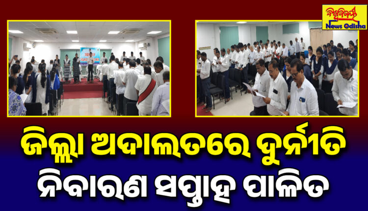 { ଜଗତସିଂହପୁରରୁ ରାକେଶ କୁମାର ରାୟଙ୍କ ରିପୋର୍ଟ } : ଜଗତସିଂହପୁର ଜିଲ୍ଲା ଆଇନ ସେବା ପ୍ରାଧୀକରଣ ତରଫରୁ ଜିଲ୍ଲା ଅଦାଲତରେ ଦୁର୍ନୀତି ନିବାରଣ ସପ୍ତାହ ପାଳିତ ହୋଇଯାଇଛି I ଏହି କାର୍ଯ୍ୟକ୍ରମରେ ଜିଲ୍ଲା ଓ ଦୌରା ଜଜ୍ ତଥା ପ୍ରାଧିକରଣର ଅଧ୍ଯକ୍ଷ ଶ୍ରୀ ଶ୍ରୀନିବାସ ପ୍ରତିହାରୀ ଅଧ୍ୟକ୍ଷତା କରି ସମସ୍ତ ବିଚାର ବିଭାଗୀୟ ଅଧିକାରୀ ଏବଂ ଅଦାଲତର କର୍ମଚାରୀମାନଙ୍କୁ ସାଧୁତାର ଶପଥ ପାଠ କରାଇଥିଲେ I ଜୀବନର ପ୍ରତ୍ୟେକ କ୍ଷେତ୍ରରେ ସଚେତନତା ଏବଂ ଆଇନର ଶାସନକୁ ଅନୁପାଳନ କରିବା ସହ ସମସ୍ତ ଦାୟିତ୍ଵକୁ ସାଧୁତା ଏବଂ ସ୍ଵଚ୍ଛତା ସହ ସମ୍ପାଦନ କରିବା ଉଚିତ I ଜନସାଧାରଣଙ୍କ ହିତ ପାଇଁ କାର୍ୟ କରିବା ନିତ୍ୟାନ୍ତ ଆବଶ୍ୟକ। ନିଜ ବ୍ୟକ୍ତିଗତ ଆଚରଣରେ ଦୃଷ୍ଟାନ୍ତ ମୂଳକ ସାଧୁତା ବଜାୟ ରଖି ଉଦାହରଣ ହେବା ପାଇଁ ଜିଲ୍ଲା ଜଜ୍ ଶ୍ରୀ ପ୍ରତିହାରୀ ଉପସ୍ଥିତ ଥିବା ସମସ୍ତ ବିଚାର ବିଭାଗୀୟ ଅଧିକାରୀ ଏବଂ ଅଦାଲତର କର୍ମଚାରୀମାନଙ୍କୁ ସଚେତନ କରାଇଥିଲେ । ଅନ୍ୟମାନଙ୍କ ମଧ୍ୟରେ ଅତିରିକ୍ତ ଜିଲ୍ଲା ଜଜ୍ (ପୋସ୍କୋ) ଶ୍ରୀ ଅଜୟ କୁମାର ମହାନ୍ତି, ପରିବାର ଅଦାଳତ ଜଜ୍ ଶ୍ରୀ ଭଗବାନ ପ୍ରଧାନ, ମୁଖ୍ୟ ବିଚାର ବିଭାଗୀୟ ମାଜିଷ୍ଟ୍ରେଟ ଶ୍ରୀମତୀ ନୀଳିମା ପଣ୍ଡା, ଆଇନ ସେବା ପ୍ରାଧୀକରଣର ସଚିବ ବି ଡି ଡି ଚନ୍ଦନା ଏବଂ ଅନ୍ୟାନ୍ୟ ବିଚାରପତିବୃନ୍ଦ ଏବଂ ଅଦାଲତର କର୍ମଚାରୀମାନେ ଉପସ୍ଥିତ ଥିଲେ I
