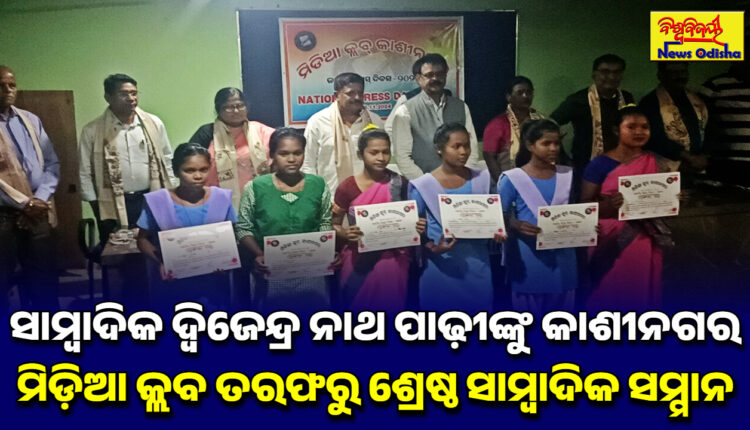 { ଗଜପତିରୁ ରେଣୁବାଳା ବେହେରାଙ୍କ ରିପୋର୍ଟ } : କାଶୀନଗର ମିଡ଼ିଆ କ୍ଲବ ତରଫରୁ ଜାତୀୟ ସାମ୍ବାଦିକ ଦିବସ ଉପଲକ୍ଷେ ସ୍ଥାନୀୟ ବ୍ଲକ ସଦଭାବନା ଗୃହ ମଧ୍ୟରେ ଏକ କାର୍ଯ୍ୟକ୍ରମ ଅନୁଷ୍ଠିତ ହୋଇଛି | ଏହି କାର୍ଯ୍ୟକ୍ରମ ରେ ମୁଖ୍ୟ ଅତିଥି ଭାବେ ଗଜପତି ଜିଲ୍ଲା ପରିଷଦ ଅଧ୍ୟକ୍ଷ ଜି. ତିରୁପତି ରାଓ, ସମ୍ମାନୀତ ଅତିଥି ଭାବେ ବ୍ଲକ ଅଧ୍ୟକ୍ଷା ବାଲା ସାଇମ୍ମା, ଏନ ଏ ସି ଅଧ୍ୟକ୍ଷା ଏମ ସୁଦ୍ଧା ରାଣୀ,ଉପାଧ୍ୟକ୍ଷ ରଘୁରାମ ସାହୁ, ବିଡ଼ିଓ ଡ଼ମ୍ବୁରୁ ଧର ମଲ୍ଲିକ, ସିଡ଼ିପିଓ କନକ ଲତା ପୂଜାରୀ, ଅତିରିକ୍ତ ନିର୍ବାହୀ ଯନ୍ତ୍ରୀ ନାରାୟଣ ପାଢ଼ୀ, ୱାର୍ଡ କାଉନସିଲର କେ ରାମା ରାଓ, ବରିଷ୍ଠ ରାଜନେତା ପ୍ରଦୀପ ନାୟକ ଯୋଗ ଦେଇ ସାମ୍ବାଦିକତା ବିଷୟରେ ବକ୍ତବ୍ୟ ରଖି ଜାତୀୟ ସାମ୍ବାଦିକ ଦିବସ ପାଳନର ଆବଶ୍ୟକତା ବିଷୟରେ କହିଥିଲେ | ଗଜପତି ଜିଲ୍ଲା ରେ ସାମ୍ବାଦିକତା କ୍ଷେତ୍ରରେ ଜୀବନ ବ୍ୟାପି ସାମ୍ବାଦିକତା କରି ବିଭିନ୍ନ ସମୟରେ ସରକାରୀ ସ୍ତରରେ ବହୁ ସୁନାମ ଅର୍ଜନ କରି ଏହାର ଆବଶ୍ୟକତାକୁ ସମସ୍ତ ଙ୍କ ସମ୍ମୁଖରେ ପ୍ରତିପାଦନ କରିଥିବାରୁ ବରିଷ୍ଠ ସାମ୍ବାଦିକ ଦ୍ବିଜେନ୍ଦ୍ର ନାଥ ପାଢ଼ୀ ଙ୍କୁ କାଶୀନଗର ମିଡ଼ିଆ କ୍ଲବ ତରଫରୁ ଶ୍ରେଷ୍ଠ ସାମ୍ବାଦିକ ସମ୍ମାନ ଦେଇ ସମ୍ବର୍ଦ୍ଧନା ଦିଆ ଯାଇଥିଲା. ଏହି କାର୍ଯ୍ୟକ୍ରମ ରେ ସଭାପତି ଆନନ୍ଦ ଚନ୍ଦ୍ର ପାତ୍ର ଉପସ୍ଥିତ ଅତିଥିଙ୍କ ପରିଚୟ ଦେଇ ସ୍ୱାଗତ କରିଥିବା ବେଳେ ବରିଷ୍ଠ ସାମ୍ବାଦିକ ହୃଷିକେଶ ଗୌଡ଼ ପରିଚାଳନା କରିଥିଲେ ଓ ସମ୍ପାଦକ ରବୀନ୍ଦ୍ର ନାଥ ମଲ୍ଲିକ ସମସ୍ତ ଉପସ୍ଥିତ ସଦସ୍ୟ, ଅତିଥି ଙ୍କୁ ଧନ୍ୟବାଦ ଅର୍ପଣ କରିଥିଲେ | ଏହି କାର୍ଯ୍ୟକ୍ରମରେ ମେଡ଼ିଆ କ୍ଳବର ସମସ୍ତ ସାମ୍ବାଦିକ ଯୋଗ ଦେଇ ସହଯୋଗ କରିଥିବା ବେଳେ କାଶୀନଗର ର ବିଭିନ୍ନ ବିଦ୍ୟାଳୟର ଅଧ୍ୟୟନ କରୁଥିବା ଆଦର୍ଶ ଛାତ୍ର ଛାତ୍ରୀ ଙ୍କୁ ମାନପତ୍ର ସହ ଉପଢୌକନ ପ୍ରଦାନ କରାଯାଇଥିଲା |
