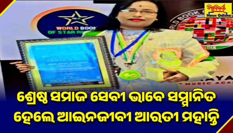 { ଜୟପୁରରୁ ଦେବଦତ୍ତ ପାଣିଙ୍କ ରିପୋର୍ଟ } : ଜୟପୁର ସହରର ଅତି ପରିଚିତ ଆଇନଜୀବୀ ତଥା ହ୍ୟୁମାନ ରାଇଟ୍ସର ସାଉଥ ଜନ ର ସଭାପତି ମହିଳା ଆରତୀ ମହାନ୍ତିଙ୍କୁ କଲିକତା ରେ ଶ୍ରେଷ୍ଠ ସମାଜସେବୀ ଭାବେ ସମ୍ମାନିତ କରାଯାଇଛି। କଲିକତାରେ ଆୟୋଜିତ ଏହି ଉତ୍ସବରେ ବଙ୍ଗ ଗୌରବ ସମ୍ମାନରେ ତାଙ୍କୁ ସମ୍ମାନୀତ କରାଯାଇଥିଲା। ସେ ଜଣେ ଆଇନଜୀବୀ ସହ , ହ୍ୟୁମାନ ରାଇଟ୍ସ ର ସାଉଥ ଜନ ର ସଭାପତି ଦାୟିତ୍ୱ ମଧ୍ୟ ତୁଲାଉଛନ୍ତି ସହରରେ ଅନେକ ଉନ୍ନତିମୂଳକ କାର୍ଯ୍ୟ କରିବା ସହ ଅନାଥ ମାନଙ୍କୁ ସାହାର୍ଯ୍ୟ କରିବା ଓ ଗରୀବ ଅସହାୟଙ୍କୁ ସାହାର୍ଯ୍ୟ କରିବାକୁ ସେ ଭଲ ପାଆନ୍ତି । ଏହିପରି କୋରାପୁଟ ମାଟିର ଝିଅ ବଙ୍ଗଳାଦେଶର କଲିକତାରେ ସମ୍ମାନୀତ ହୋଇଥିବା ଖବର ପ୍ରଚାର ହେବା ପରେ ସ୍ଥାନୀୟ ଅଞ୍ଚଳରେ ଖୁସିର ଲହରି ଖେଳିବା ସହିତ ତାଙ୍କ ସଫଳତା ପ୍ରତି ବିଭିନ୍ନ ମହଲରୁ ପ୍ରଶଂସାର ସୁଅ ଛୁଟିଛି।