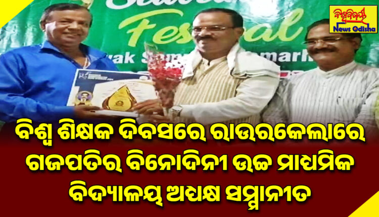 { ଗଜପତିରୁ ରେଣୁବାଳା ବେହେରାଙ୍କ ରିପୋର୍ଟ } : ଦୀପିକା ଇଂରାଜୀ ମିଡିୟମ ସ୍କୁଲ ଠାରେ ଅନ୍ଵେଷା ସଂସ୍ଥା ଦ୍ୱାରା ବିଶ୍ୱ ଶିକ୍ଷକ ଦିବସ ପାଳନ ହୋଇଯାଇଛି | ଏହି ଅବସରରେ ଶିକ୍ଷକ, ଅଧ୍ୟାପକ, ପ୍ରଫେସର ଓ ଅଧ୍ୟକ୍ଷ ମାନଙ୍କୁ ସମ୍ମାନିତ କରାଯାଇଥିଲା | ଏହା ସହିତ ଅନ୍ୟ ଏକ ସଂସ୍ଥା ହ୍ୟାପି ମୁମେଣ୍ଟସ ତରଫରୁ ରାଷ୍ଟ୍ରୀୟ ସର୍ବଶ୍ରେଷ୍ଠ ଗୁରୁ ସମ୍ମାନ ଉତ୍ସବ ପାଳନ ହୋଇ ଯାଇଛି | ସମାଜ ଉପରେ ଉତ୍ତମ ଶିକ୍ଷକର ପ୍ରଭାବ ଉପରେ ଗୁରୁତ୍ୱ ଦିଆଯାଇ ଚୟନ ପ୍ରକ୍ରିୟା ମାଧ୍ୟମରେ ଚୟନ ହୋଇଥିବା ଶିକ୍ଷକ ମାନଙ୍କୁ ସମ୍ମାନୀତ କରାଯାଇଥିଲା। ସେଥିରେ ଗଜପତି ଜିଲ୍ଲା ଗୁମ୍ମା ବ୍ଲକର ପଦ୍ମପୁର ସ୍ଥିତ ବିନୋଦିନୀ ବିଜ୍ଞାନ ଉଚ୍ଚ ମାଧ୍ୟମିକ ବିଦ୍ୟାଳୟର ଅଧ୍ୟକ୍ଷ ଶ୍ରୀ ମନୋଜ କୁମାର ପଟ୍ଟନାୟକ ନିଜର ଅଧ୍ୟାପନା ଦାୟିତ୍ୱକୁ ସୁଚାରୁରୂପେ ଚଳାଇ ଆସୁଥିବାରୁ ଏବଂ ମାନବିକତାକୁ ଆଧାର କରି ଶିକ୍ଷା କ୍ଷେତ୍ରରେ ସଂସ୍କାର ଆଣିବା ସହ ଉଚିତ ଶିକ୍ଷା ଦାନ କରିବା ସକାଶେ ତାଙ୍କୁ ସମ୍ମାନିତ କରାଯାଇଥିଲା | ଶିକ୍ଷା କ୍ଷେତ୍ର ହିଁ ଏକ ଶିକ୍ଷକର ଜୀବନକୁ ସର୍ବଶ୍ରେଷ୍ଠ କରିଥାଏ, ଏହି ମନ୍ତ୍ରରେ ବିଭୂଷିତ ହୋଇ ସେ ଅନବରତ କାର୍ଯ୍ୟ କାର୍ଯ୍ୟ କରିଆସୁଥିବାରୁ ତାର ଫଳସ୍ୱରୂପ ତାଙ୍କୁ ଆଜି ରାଉରକେଲା ସ୍ଥିତ ଅନ୍ଵେଷା ଓ ହ୍ୟାପି ମୁମେଣ୍ଟସ ଅନୁଷ୍ଠାନ ତରଫରୁ ବିଶ୍ୱ ଶିକ୍ଷକ ଦିବସ ଉପଲକ୍ଷେ ସମ୍ମାନିତ କରାଯାଇଛି ।
