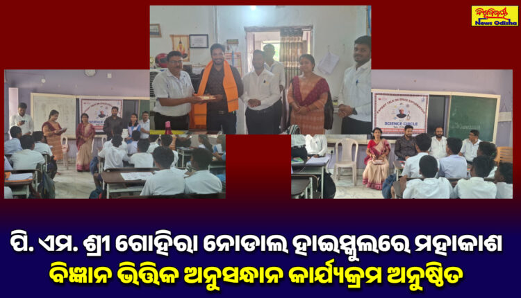 { ଦେବଗଡ଼ରୁ ଇନ୍ଦ୍ରଜିତ ନାଏକଙ୍କ ରିପୋର୍ଟ } : ଦେବଗଡ଼ ଜିଲ୍ଲା ରିଆମାଳ ବ୍ଲକ ଅଧିନସ୍ଥ ରେଙ୍ଗାଲ ବେଡ଼ା ଗ୍ରାମରେ ଥିବା ପି .ଏମ .ଶ୍ରୀ ଗୋହିରା ନୋଡାଲ ହାଇସ୍କୁଲ ରେ ” ମହାକାଶ ବିଜ୍ଞାନ ଅନୁସନ୍ଧାନ ” ଶୀର୍ଷକ କାର୍ଯ୍ୟକ୍ରମ ପ୍ରଧାନ ଶିକ୍ଷକ କୁମୁଦ ବନ୍ଧୁ ପୃଷ୍ଟି ଙ୍କ ପୌରହିତ୍ୟ ରେ ସୁଚାରୁ ରୁପେ ସମ୍ପାଦିତ ହୋଇଅଛି | ଏହି ମାସିକ ବିଜ୍ଞାନ ଭିତ୍ତିକ କାର୍ଯ୍ୟକ୍ରମ ରେ ଇ.ଏମ.ଆର.ଏସ.କଳାମାଟି ର ଅଧ୍ୟାପକ ମନୋରଞ୍ଜନ ବାରିକ ମୁଖ୍ୟ ଅତିଥି ରୂପେ ଯୋଗଦେଇ ମହାକାଶ , ଅନ୍ତରୀକ୍ଷ ,ସୂର୍ଯ୍ୟ ,ଚନ୍ଦ୍ର , ଗ୍ରହରାଶି ,ଉପଗ୍ରହ ମାନଙ୍କ ବିଷୟରେ ମୌଳିକ ଚିନ୍ତନ ଉପସ୍ଥାପନା କରିଥିଲେ | ମହାକାଶ ବିଜ୍ଞାନ କୁ ନେଇ ଆୟୋଜିତ ହୋଇଥିବା ପ୍ରତିଯୋଗିତା ର କୃତୀ ପ୍ରତିଯୋଗୀ ମାନଙ୍କୁ ମୁଖ୍ୟ ଅତିଥି ପୁରସ୍କୃତ କରିଥିଲେ | ଅନ୍ୟ ମାନଙ୍କ ମଧ୍ୟରେ ରିଆମାଳ ହାଇସ୍କୁଲ ର ପ୍ରଧାନ ଶିକ୍ଷୟିତ୍ରୀ ସନ୍ଧ୍ୟାରାଣୀ ପାତ୍ର ଓ ବିଦ୍ୟାଳୟ ପରିଚାଳନା କମିଟି ର ସଭାପତି ଶରତ ଚନ୍ଦ୍ର ସାହୁ ଉପସ୍ଥିତ ଥିଲେ | ମୁଖ୍ୟ ଅତିଥି ଅଧ୍ୟାପକ ମନୋରଞ୍ଜନ ବାରିକ ଙ୍କୁ ପ୍ରଧାନ ଶିକ୍ଷକ ଶ୍ରୀଯୁକ୍ତ ପୃଷ୍ଟି ପୁଷ୍ପଗୁଚ୍ଛ ଓ ଉତ୍ତରୀୟ ଦେଇ ସମ୍ମାନିତ କରିଥିଲେ | କାର୍ଯ୍ୟକ୍ରମ ଆରମ୍ଭ ରେ ଶିକ୍ଷକ ବିକାଶ ମାହାର ସ୍ବାଗତ ଭାଷଣ ଦେଇଥିବା ବେଳେ ଶିକ୍ଷୟିତ୍ରୀ ବର୍ଣାଳୀ ସାହୁ ଧନ୍ୟବାଦ ଅର୍ପଣ କରିଥିଲେ | ଏହି ବିଜ୍ଞାନ ବିଚିତ୍ରା କାର୍ଯ୍ୟକ୍ରମ କୁ ସୁଚାରୁ ରୁପେ ପରିଚାଳନା କରିବାରେ ବିଦ୍ୟାଳୟ ର ଶିକ୍ଷକ ବିଘ୍ନେଶ କୁମାର ନାୟକ , ବିଶ୍ୱଜିତ ସାହୁ ,ବିକାଶ ମାହାର ଓ ଶିକ୍ଷୟିତ୍ରୀ ବର୍ଣ୍ଣାଲି ସାହୁ ପ୍ରମୁଖ ସହଯୋଗ କରିଥିଲେ |ସବୁଜ ବନାନୀ ରେ ସୁନ୍ଦର ପରିବେଶ ରେ ରେଙ୍ଗାଳବେଡା ଅଞ୍ଚଳର ଏହି ପ୍ରଜ୍ଞା ପୂର୍ଣ୍ଣ କାର୍ଯ୍ୟ କ୍ରମ କୁ ସମସ୍ତ ଛାତ୍ର ଛାତ୍ରୀ ମନ ଭରି ଉପଭୋଗ କରିଥିଲେ |
